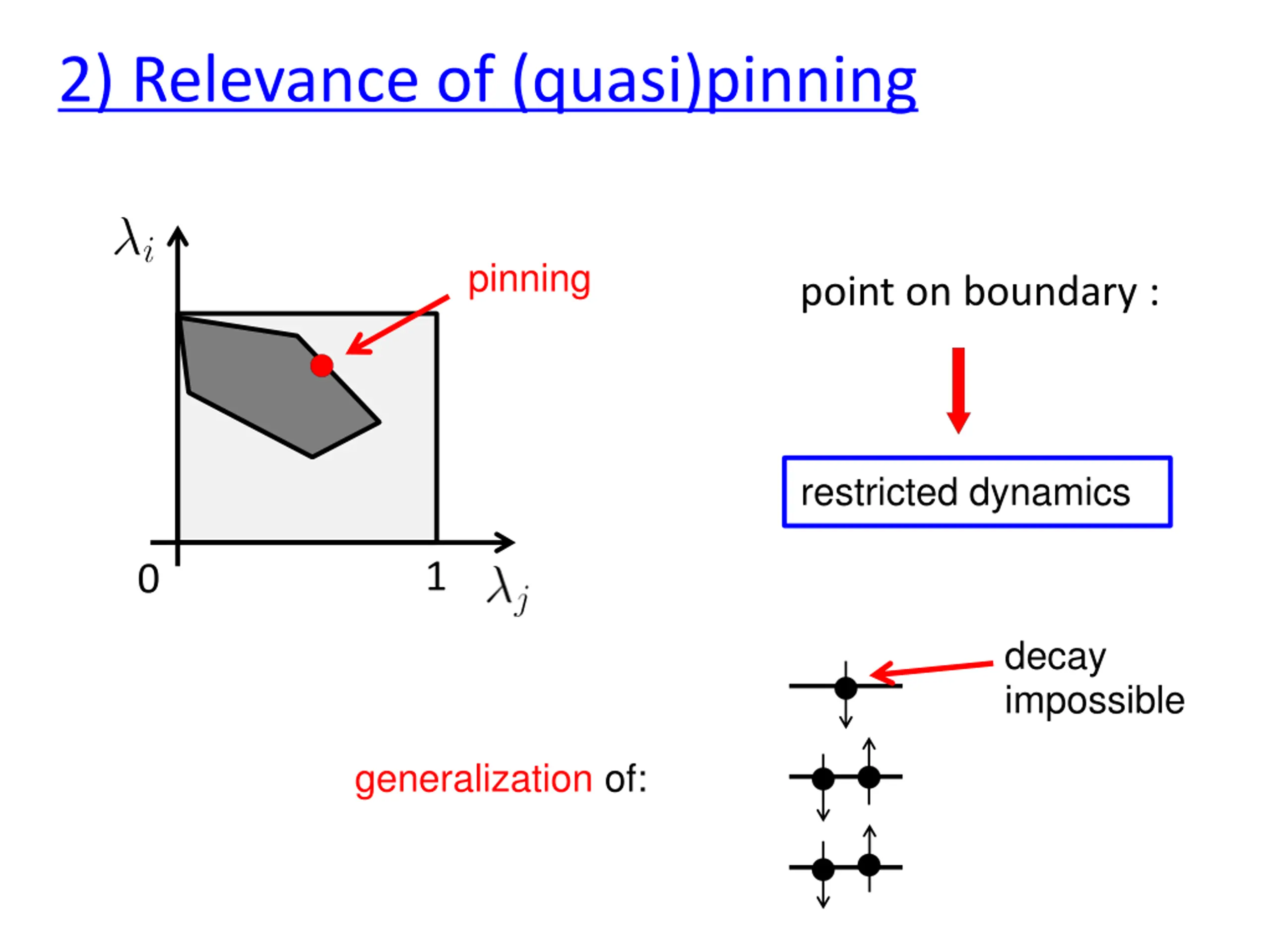 2) Relevance of (quasi)pinning pinning point on boundary : restricted dynamics 1 0 decay impossible generalization of: