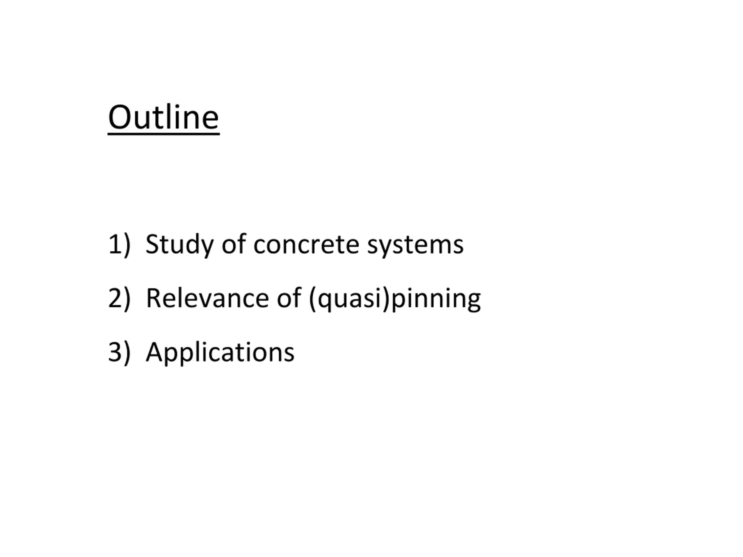 Outline 1) Study of concrete systems 2) Relevance of (quasi)pinning 3) Applications