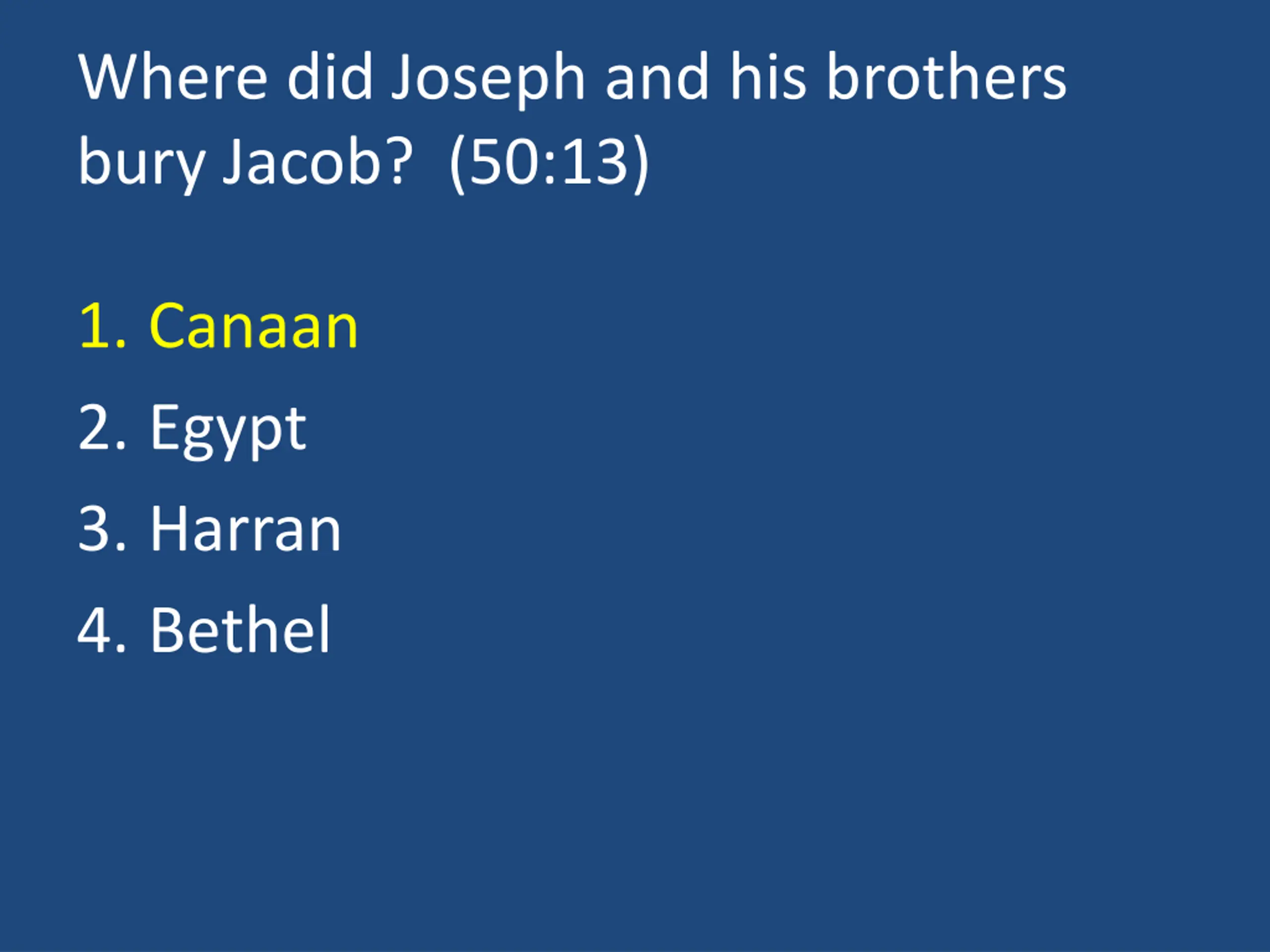 Where did Joseph and his brothers bury Jacob? (50:13) 1. Canaan 2. Egypt 3. Harran 4. Bethel