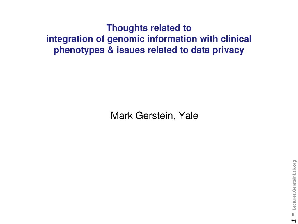 Thoughts related to integration of genomic information with clinical phenotypes & issues related to data privacy Mark Gerstein, Yale 1 - Lectures.GersteinLab.org