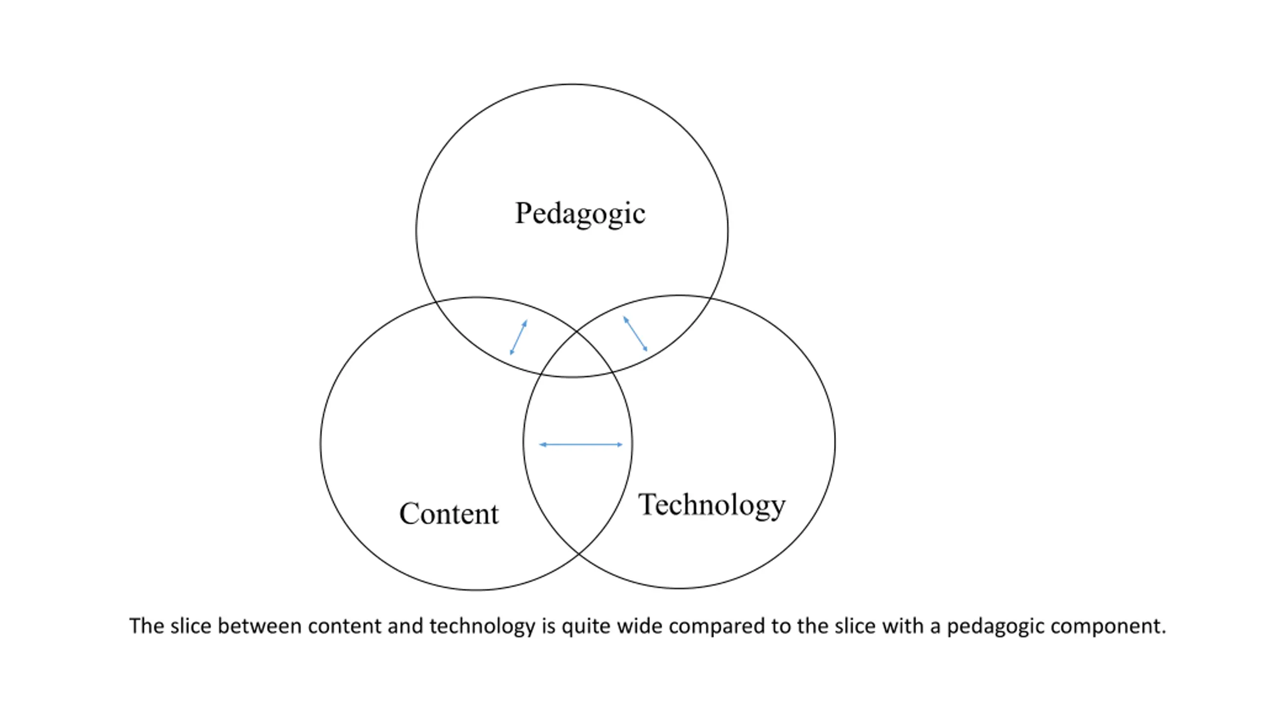 Pedagogic Technology Content The slice between content and technology is quite wide compared to the slice with a pedagogic component.