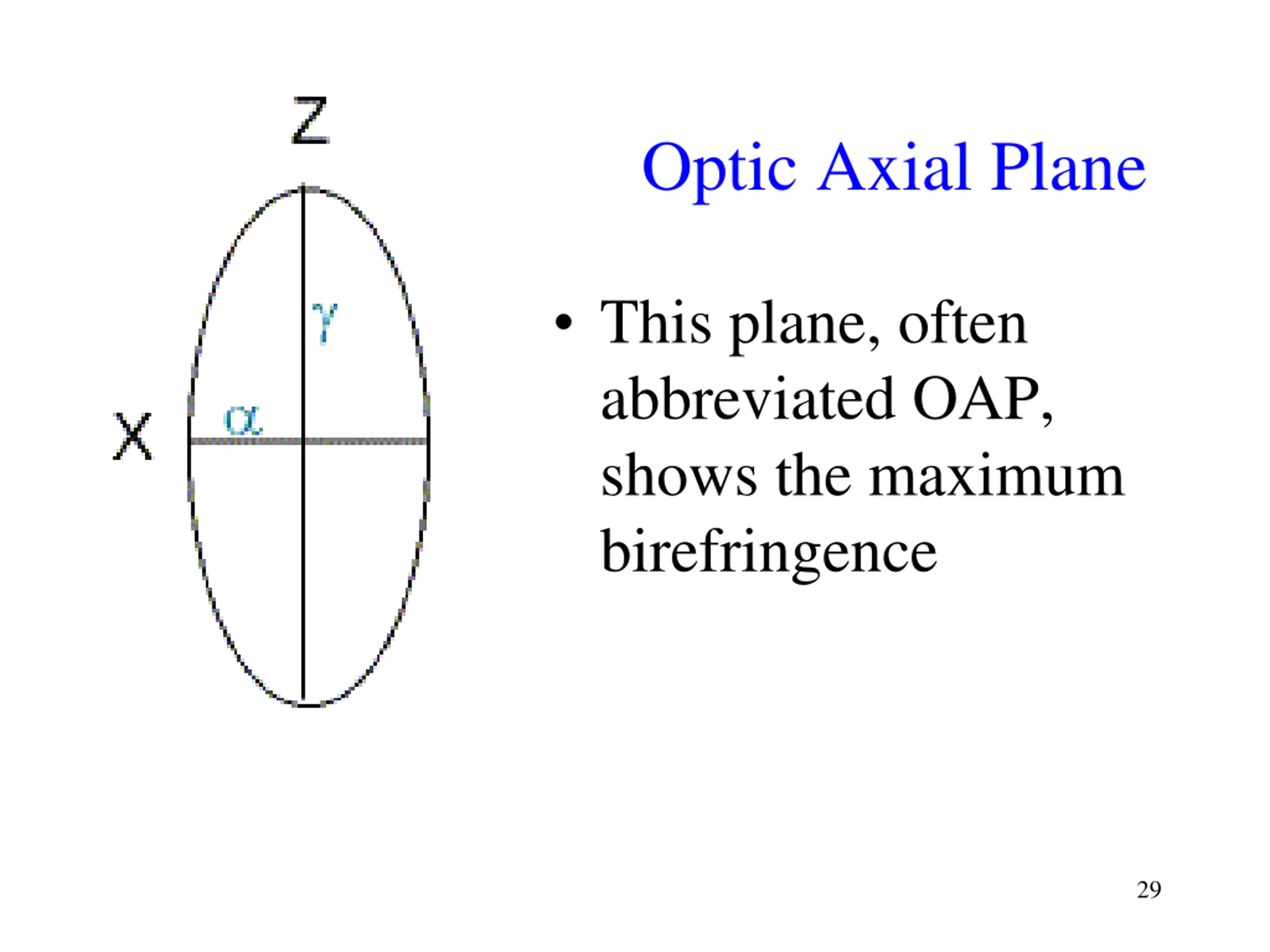 Optic Axial Plane This plane, often abbreviated OAP, shows the maximum birefringence 29