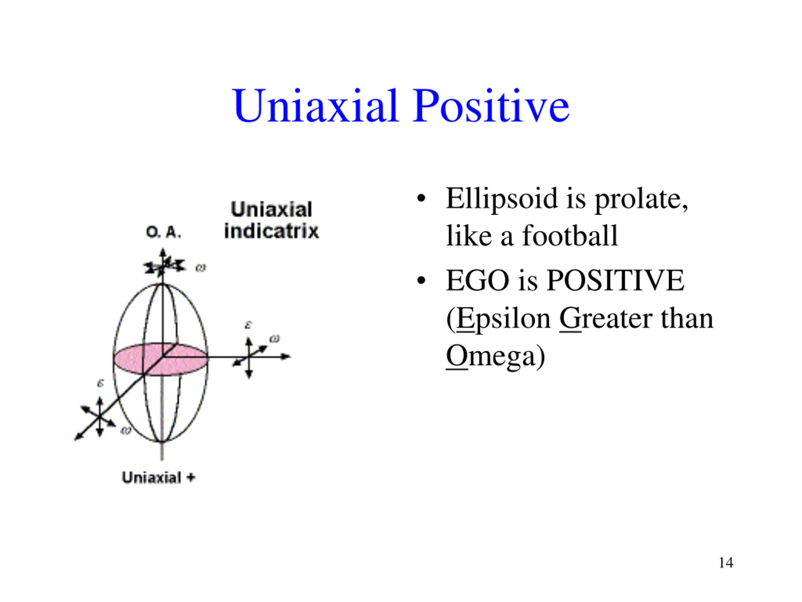 Uniaxial Positive Ellipsoid is prolate, like a football EGO is POSITIVE (Epsilon Greater than Omega) 14