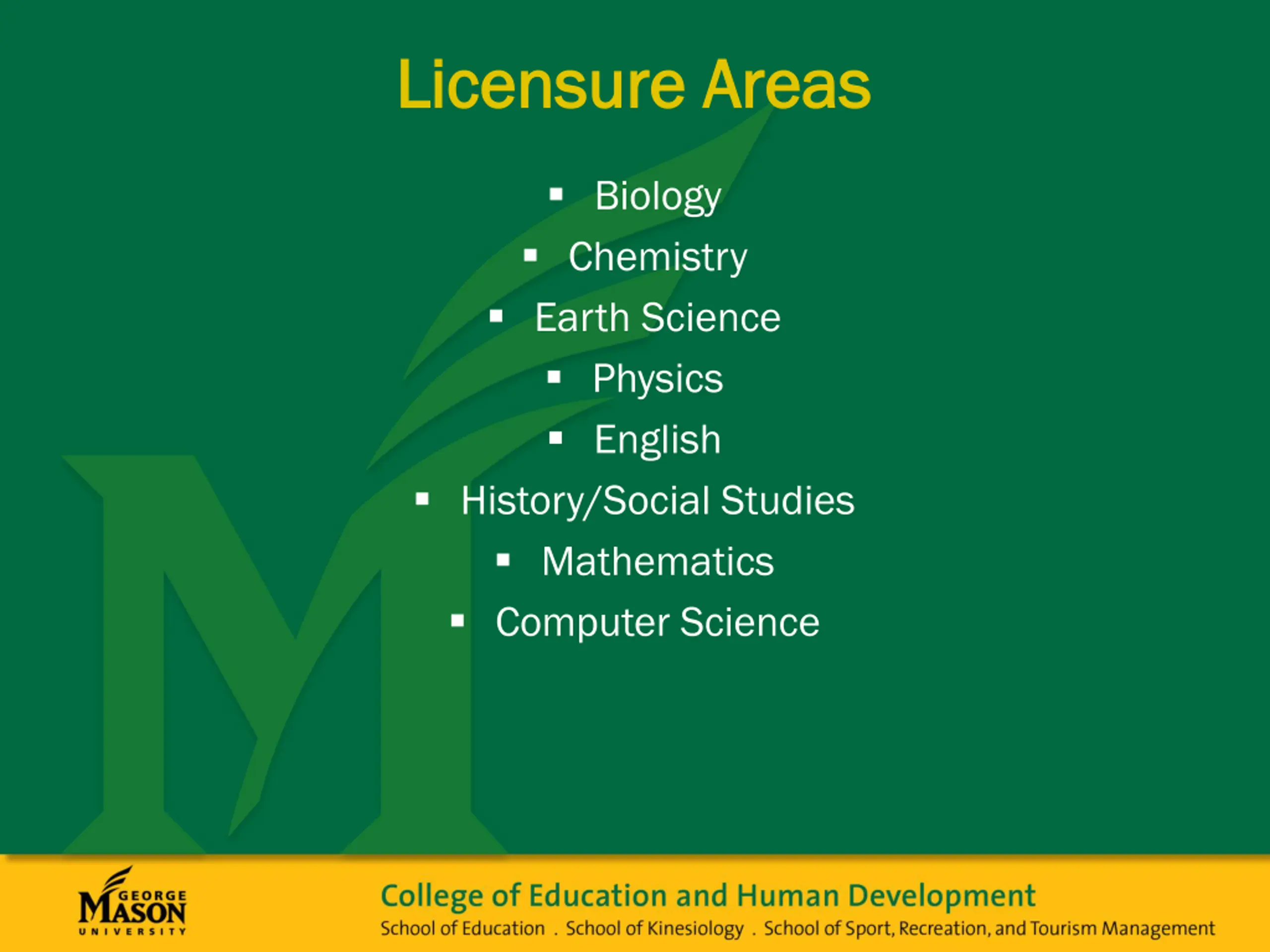 Licensure Areas Licensure Areas Biology Chemistry Earth Science Physics English History/Social Studies Mathematics Computer Science