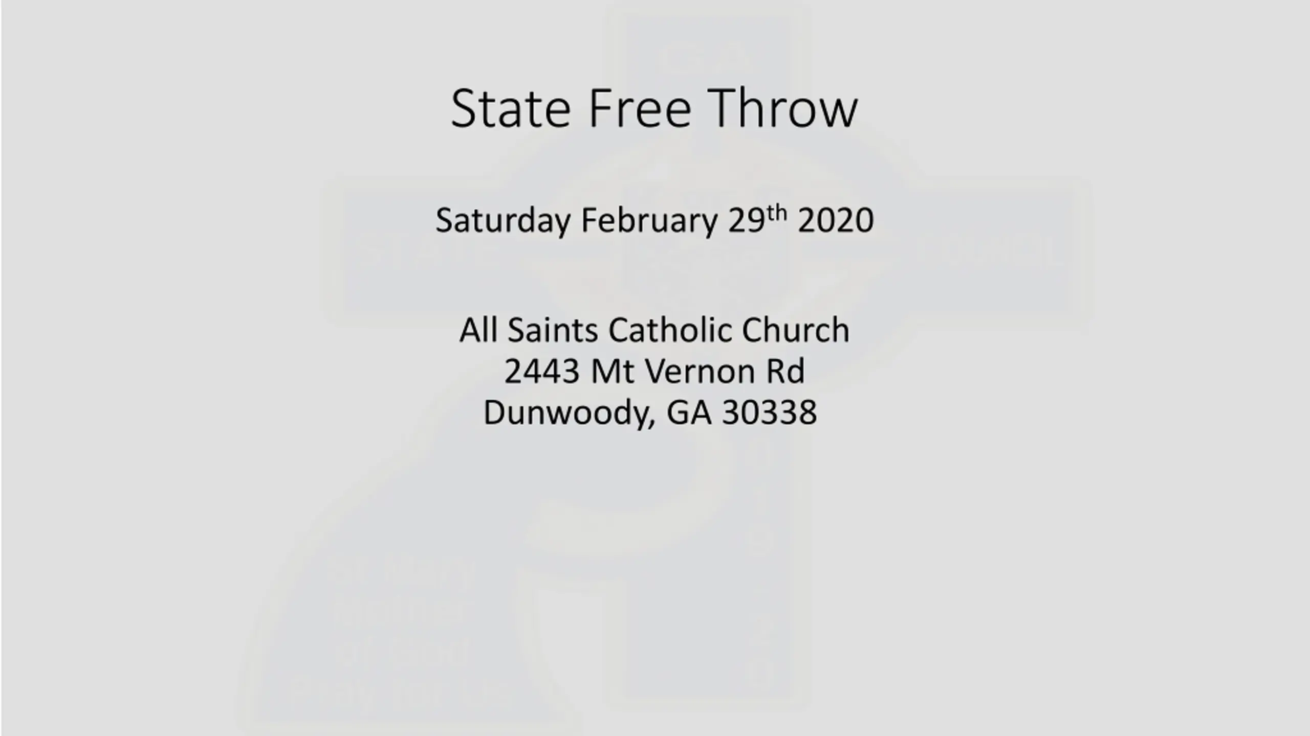 State Free Throw Saturday February 29th 2020 All Saints Catholic Church 2443 Mt Vernon Rd Dunwoody, GA 30338