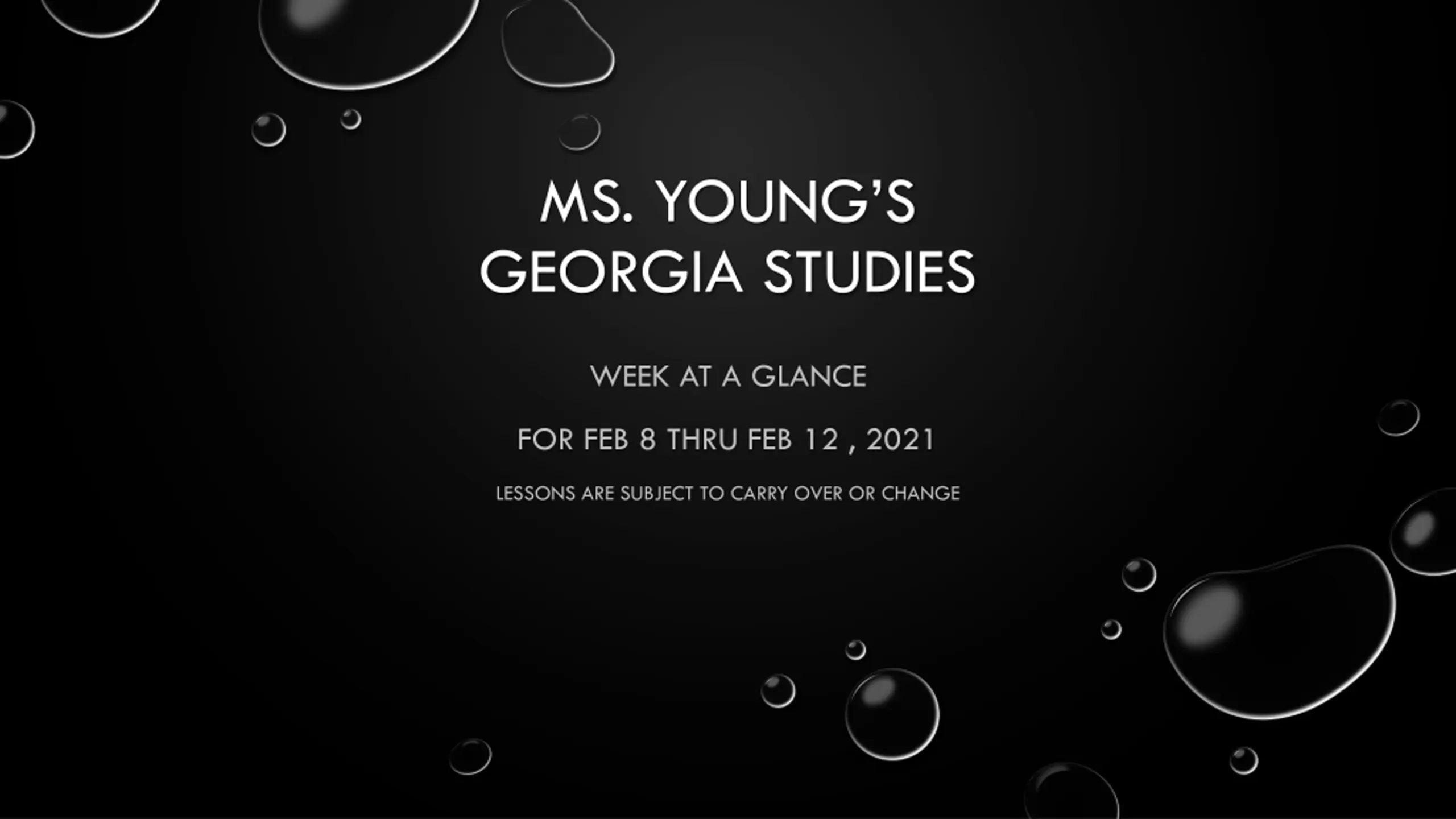 MS. YOUNGS GEORGIA STUDIES WEEK AT A GLANCE FOR FEB 8 THRU FEB 12 , 2021 LESSONS ARE SUBJECT TO CARRY OVER OR CHANGE