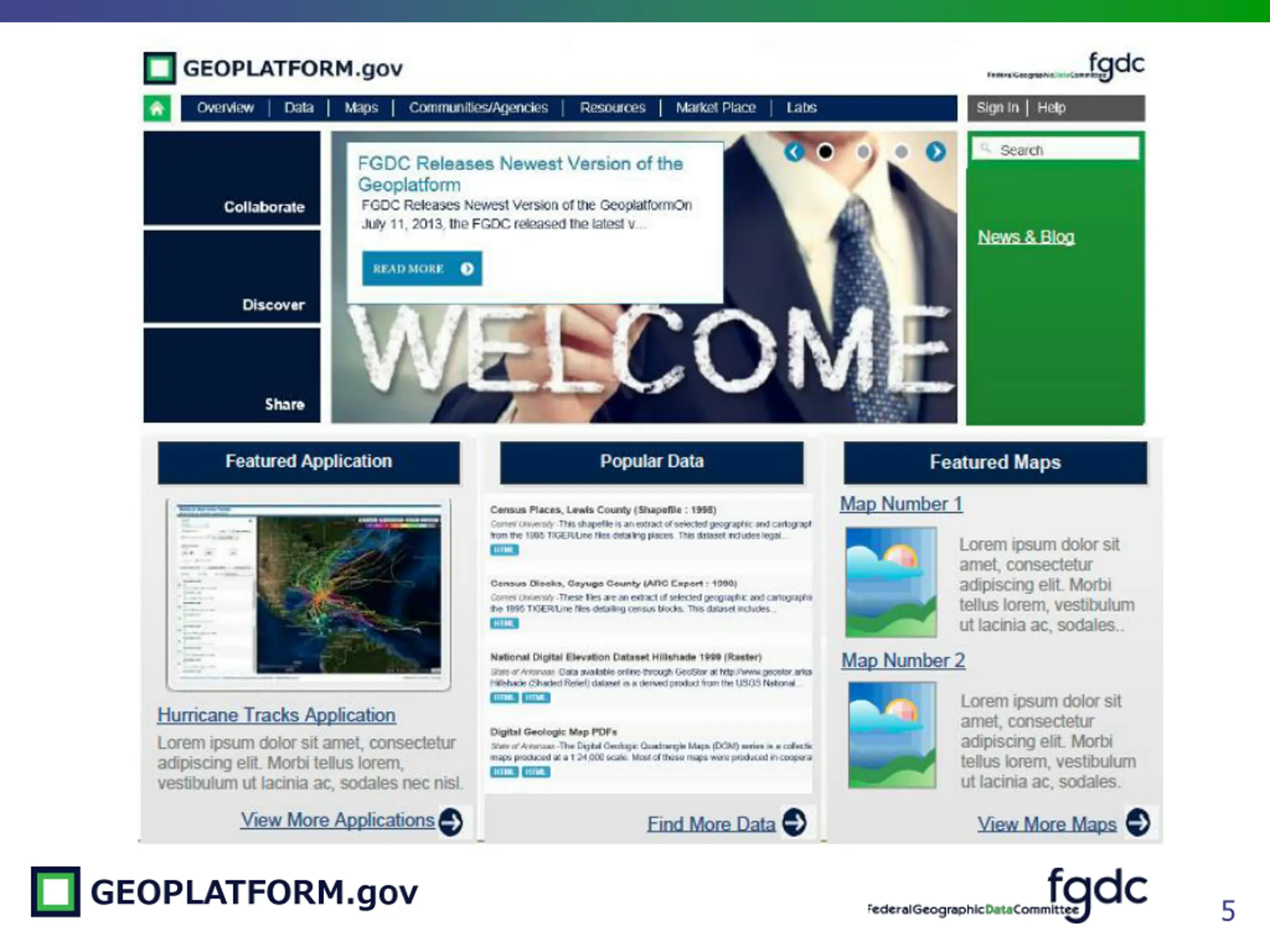Website Core Functionality Released in August Minor enhancements to style and content corrections Scheduled for early September User login functionality complete Fixes to forums, blogs, etc. Community style update Scheduled for mid-late September Site look / feel enhancements (screenshots follow) Scheduled for early-mid October Community self service content creation and editing User subscriptions to content enabled (private communities) 4