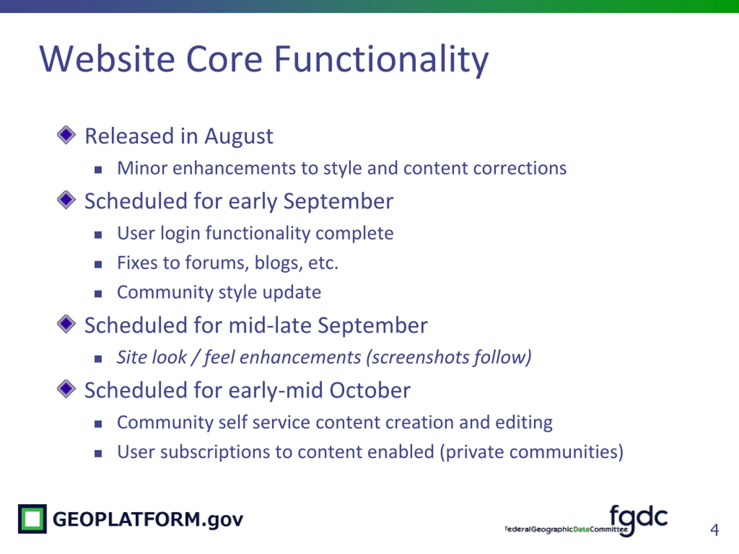 Geospatial Platform Status and Next Steps Overview