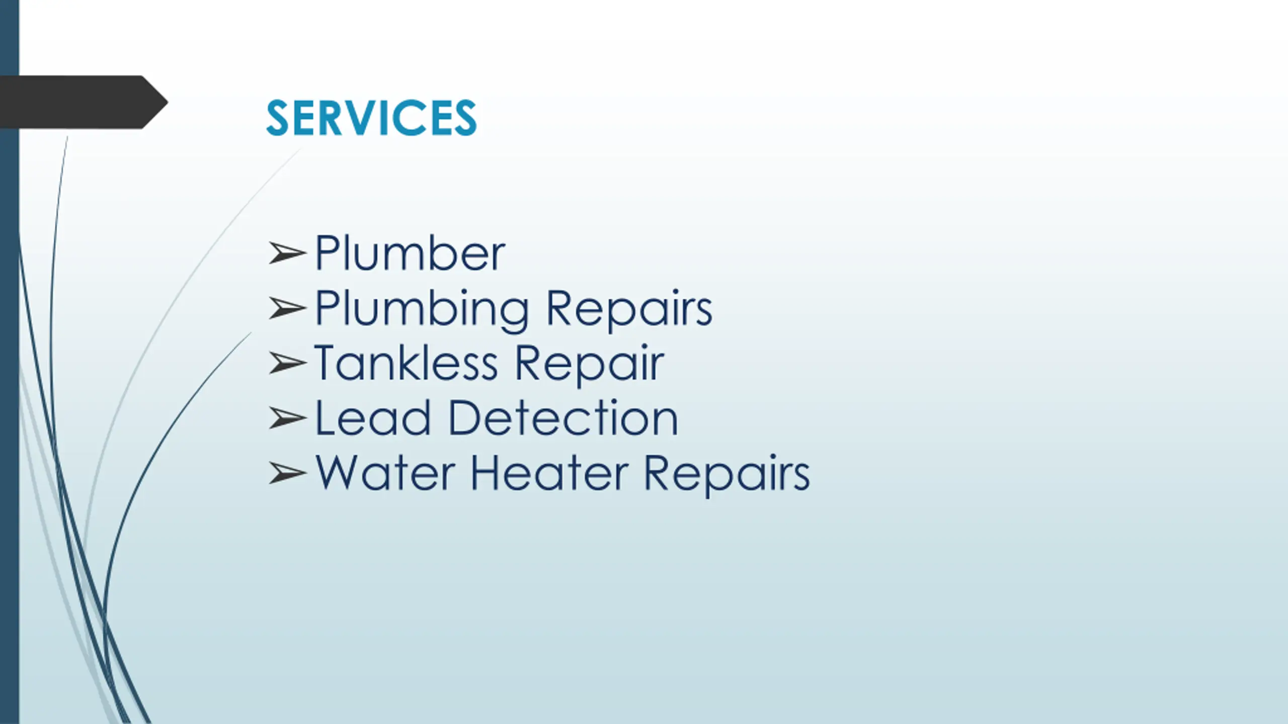 SERVICES Plumber Plumbing Repairs Tankless Repair Lead Detection Water Heater Repairs
