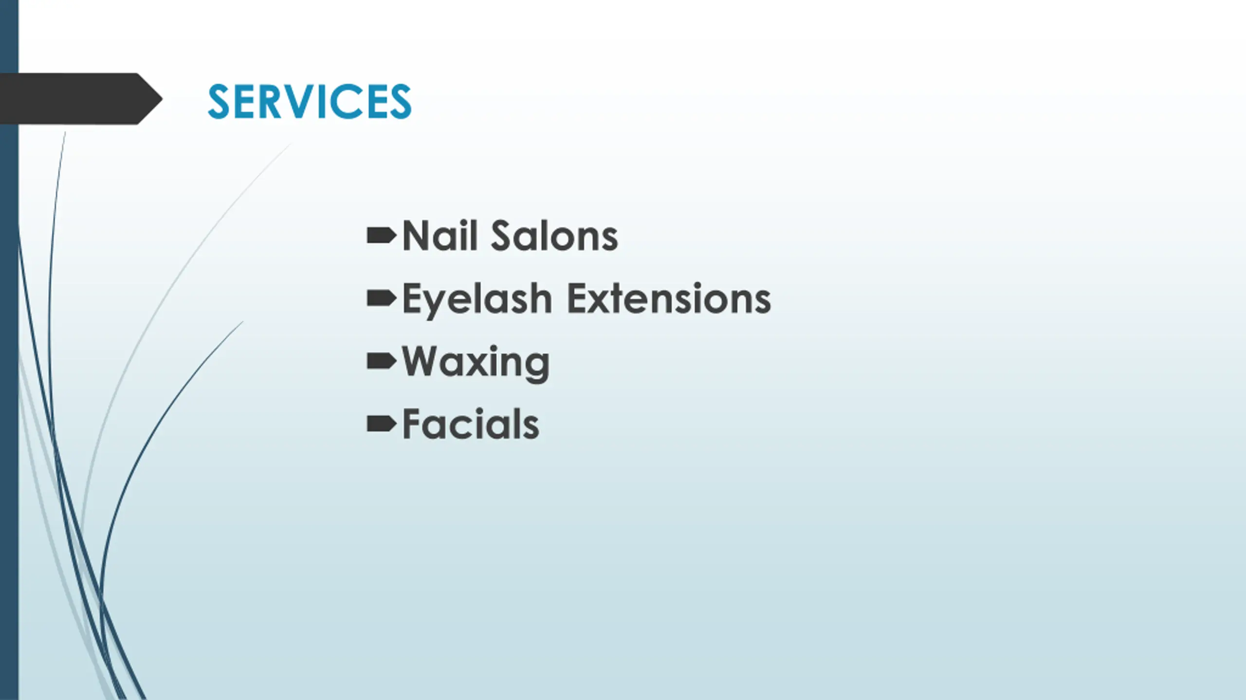 SERVICES Nail Salons Eyelash Extensions Waxing Facials