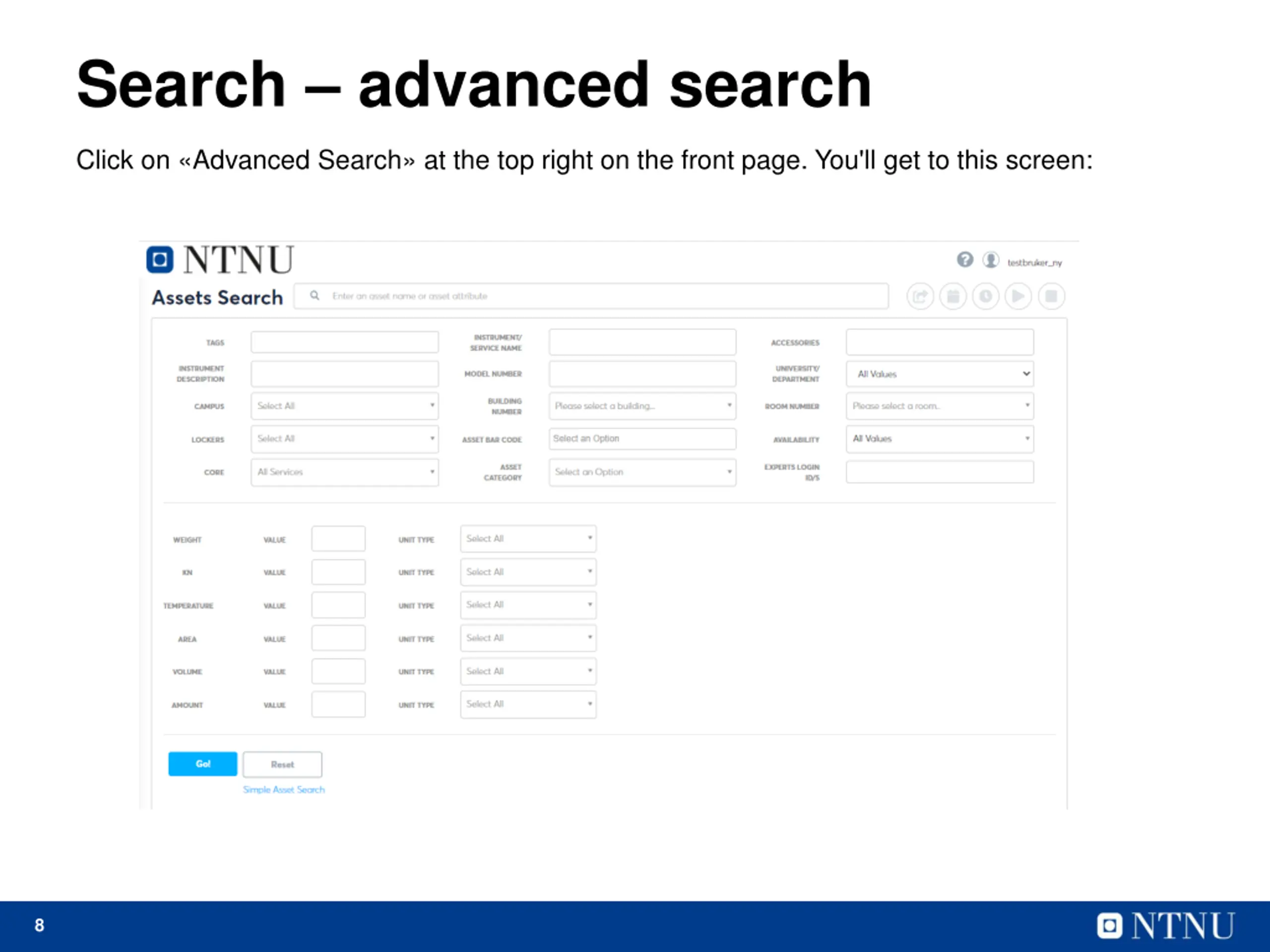 Search advanced search Click on Advanced Search at the top right on the front page. You'll get to this screen: 8