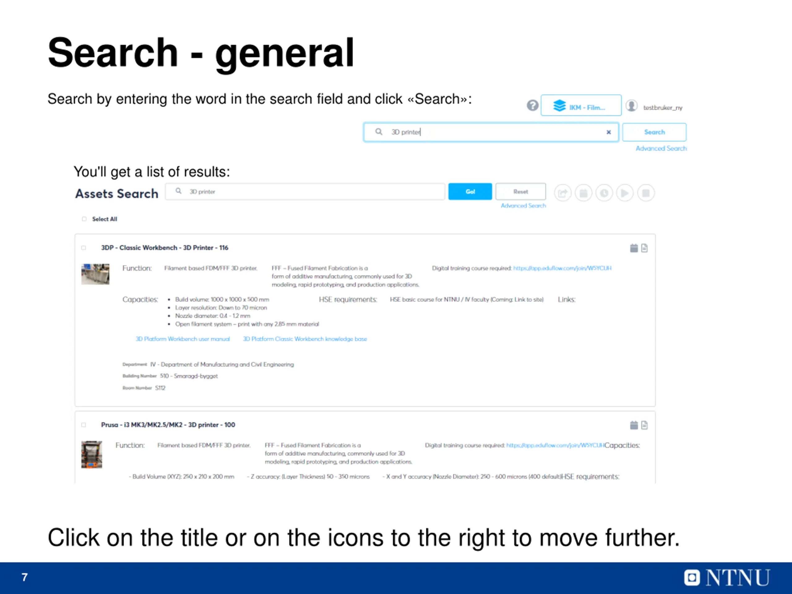 Search - general Search by entering the word in the search field and click Search : You'll get a list of results: Click on the title or on the icons to the right to move further. 7