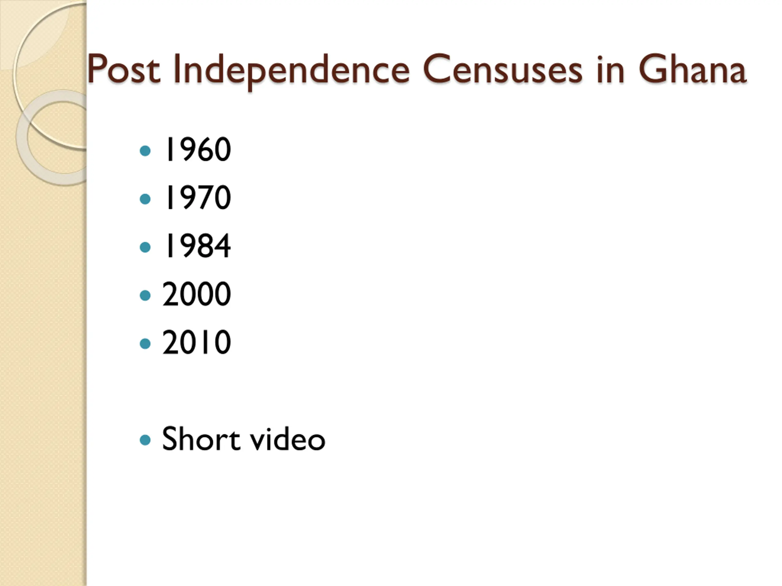 Post Independence Censuses in Ghana 1960 1970 1984 2000 2010 Short video