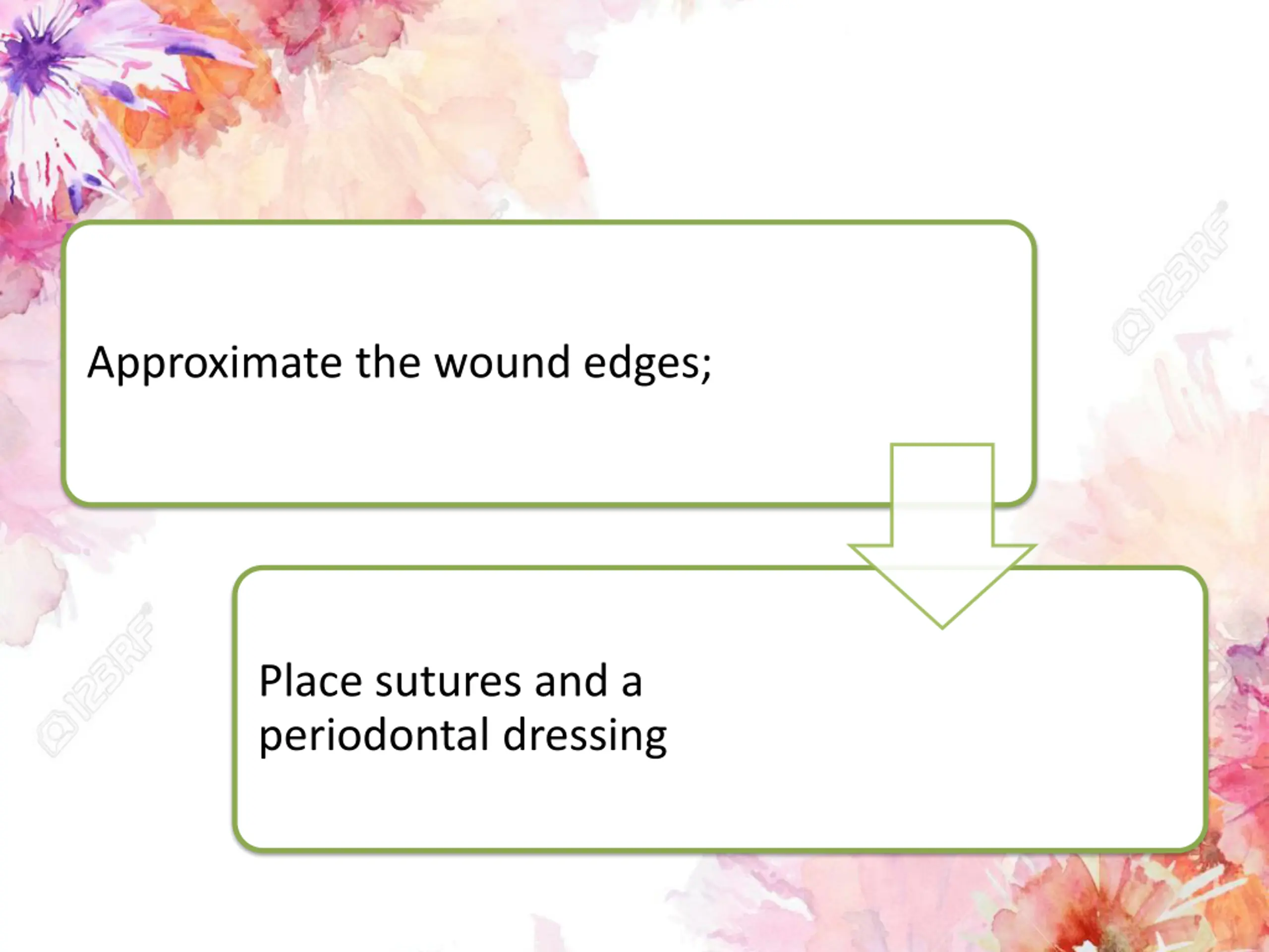 Approximate the wound edges; Place sutures and a periodontal dressing