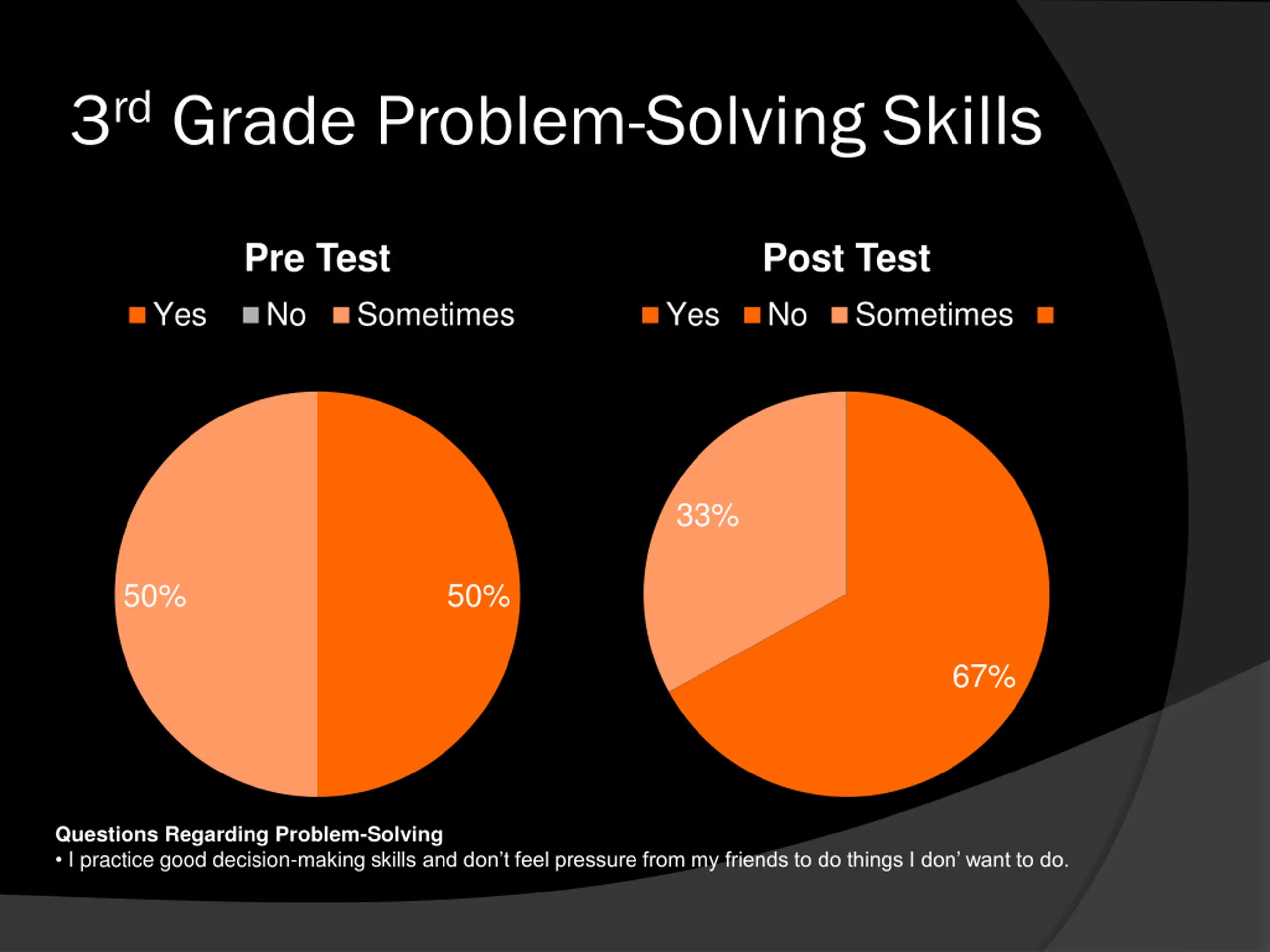 3rd Grade Problem-Solving Skills Pre Test No Post Test No Yes Sometimes Yes Sometimes 33% 50% 50% 67% Questions Regarding Problem-Solving I practice good decision-making skills and don t feel pressure from my friends to do things I don want to do.