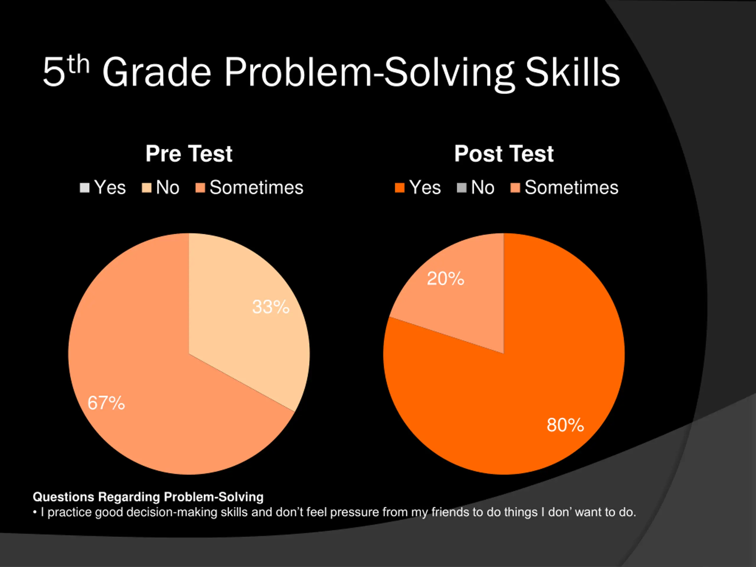 5th Grade Problem-Solving Skills Pre Test No Post Test No Yes Sometimes Yes Sometimes 20% 33% 67% 80% Questions Regarding Problem-Solving I practice good decision-making skills and don t feel pressure from my friends to do things I don want to do.
