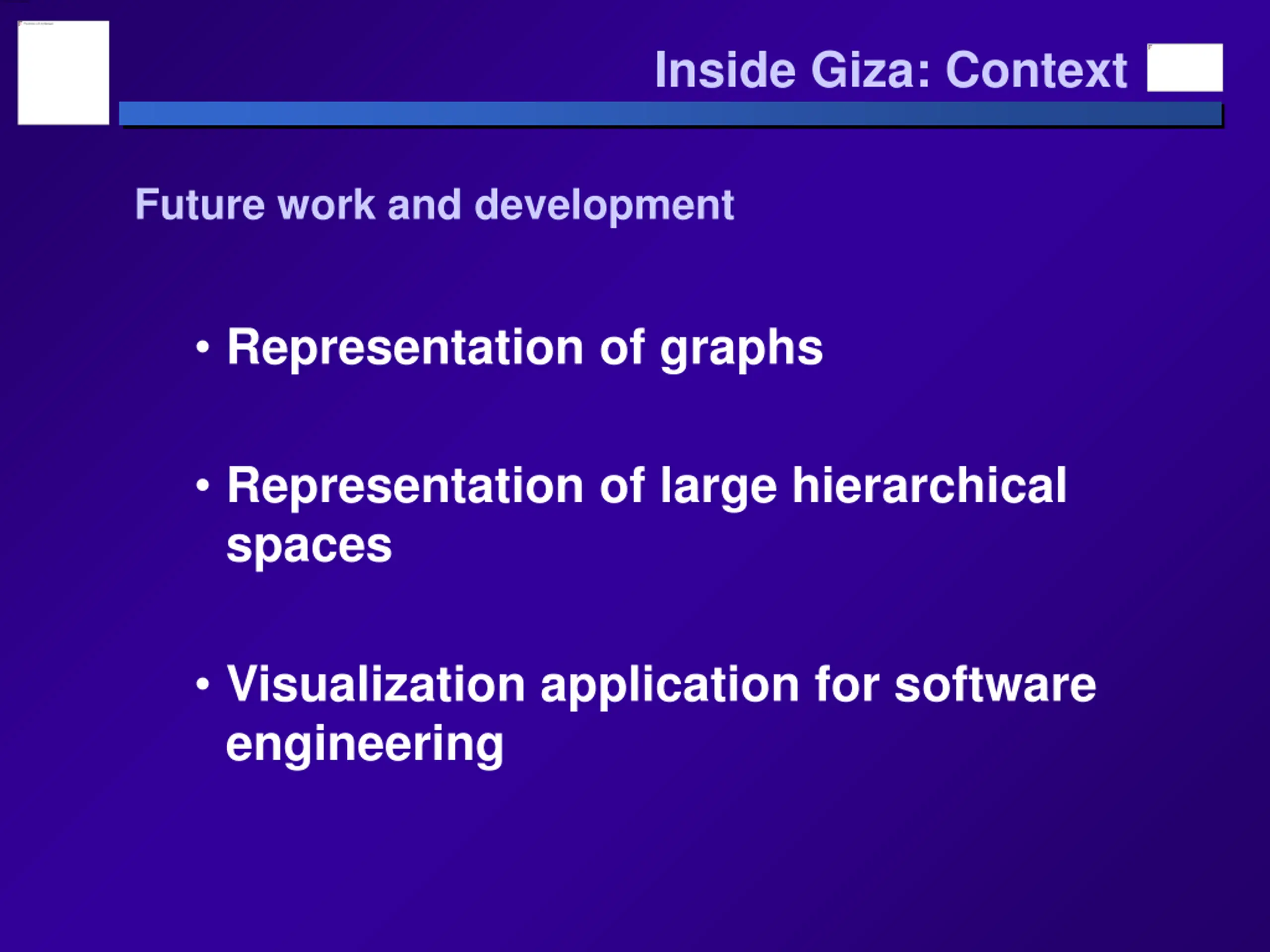 Inside Giza: Context Future work and development Representation of graphs Representation of large hierarchical spaces Visualization application for software engineering