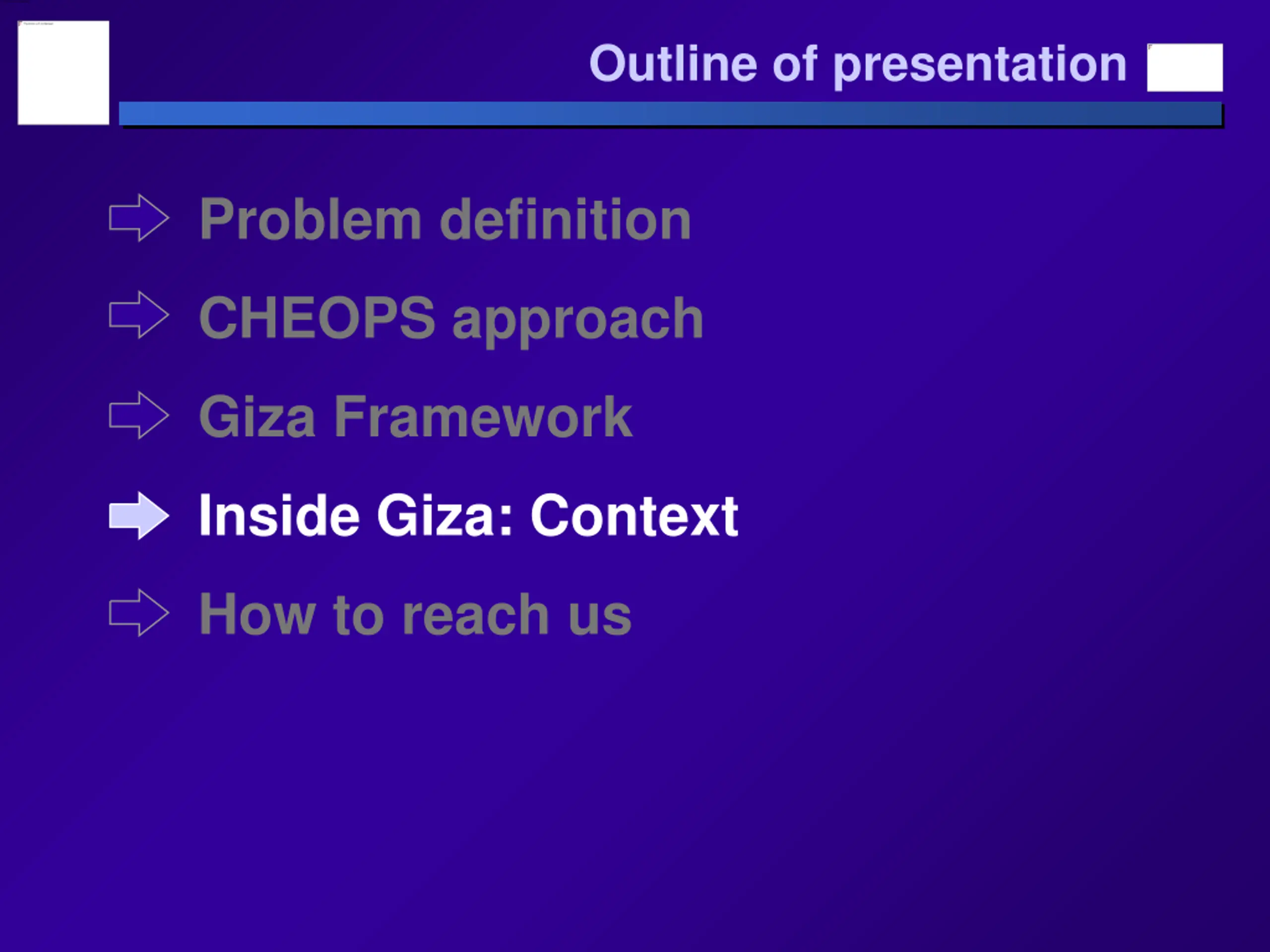 Outline of presentation Problem definition CHEOPS approach Giza Framework Inside Giza: Context How to reach us