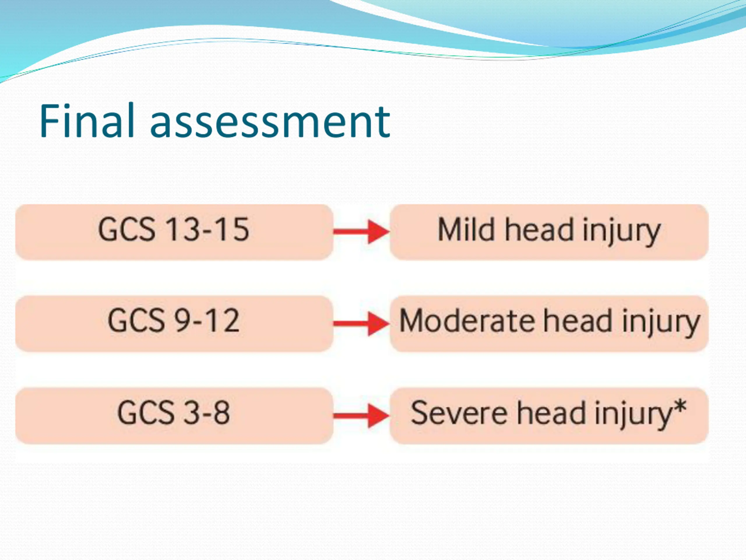 Glasgow Coma Scale The assessment is carried out in three stages (4 points( (5 points) 1- Eye Opening Response 2-Verbal Response 3-Motor Response (6 points)