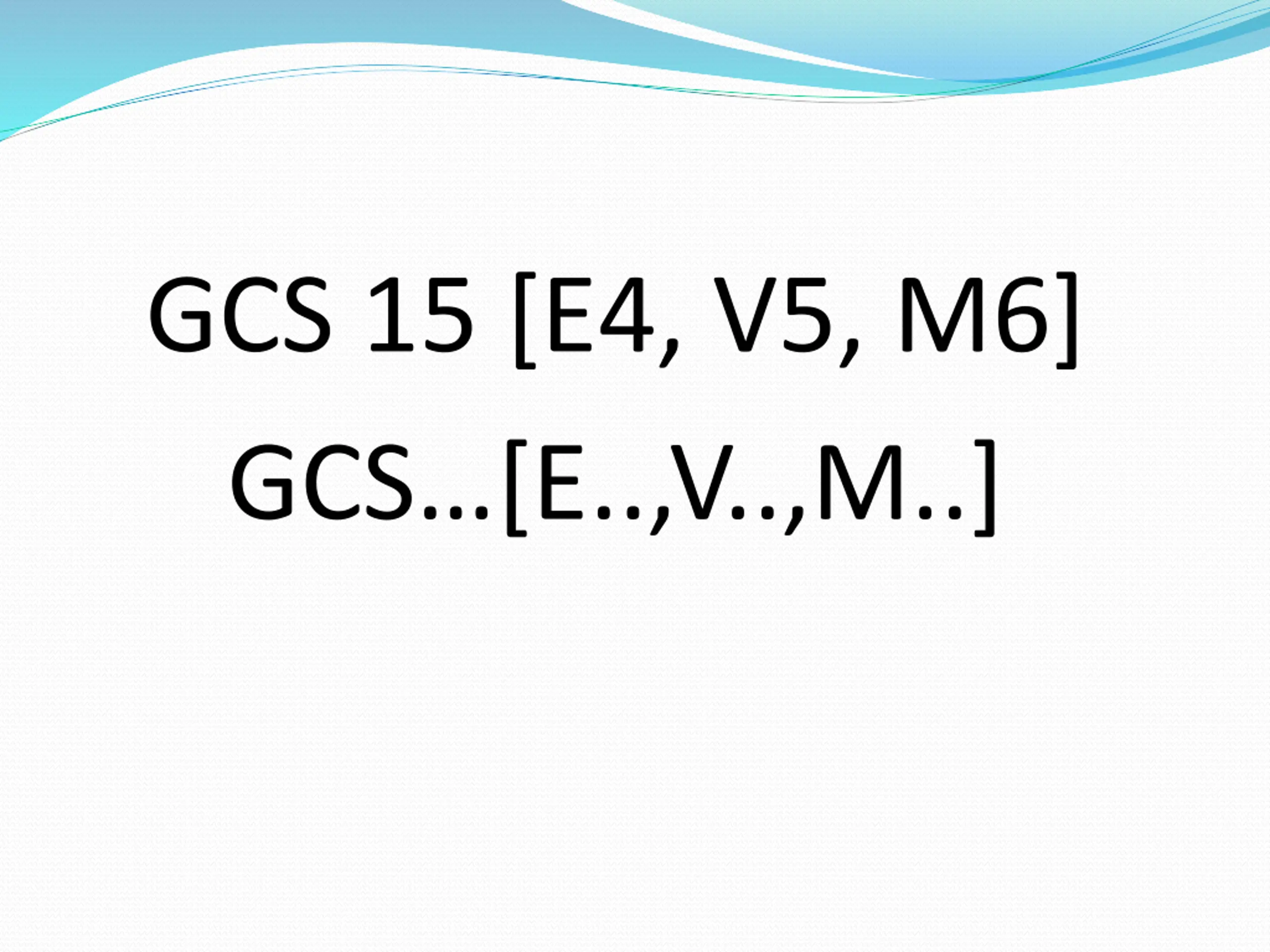 GCS 15 [E4, V5, M6] GCS [E..,V..,M..]