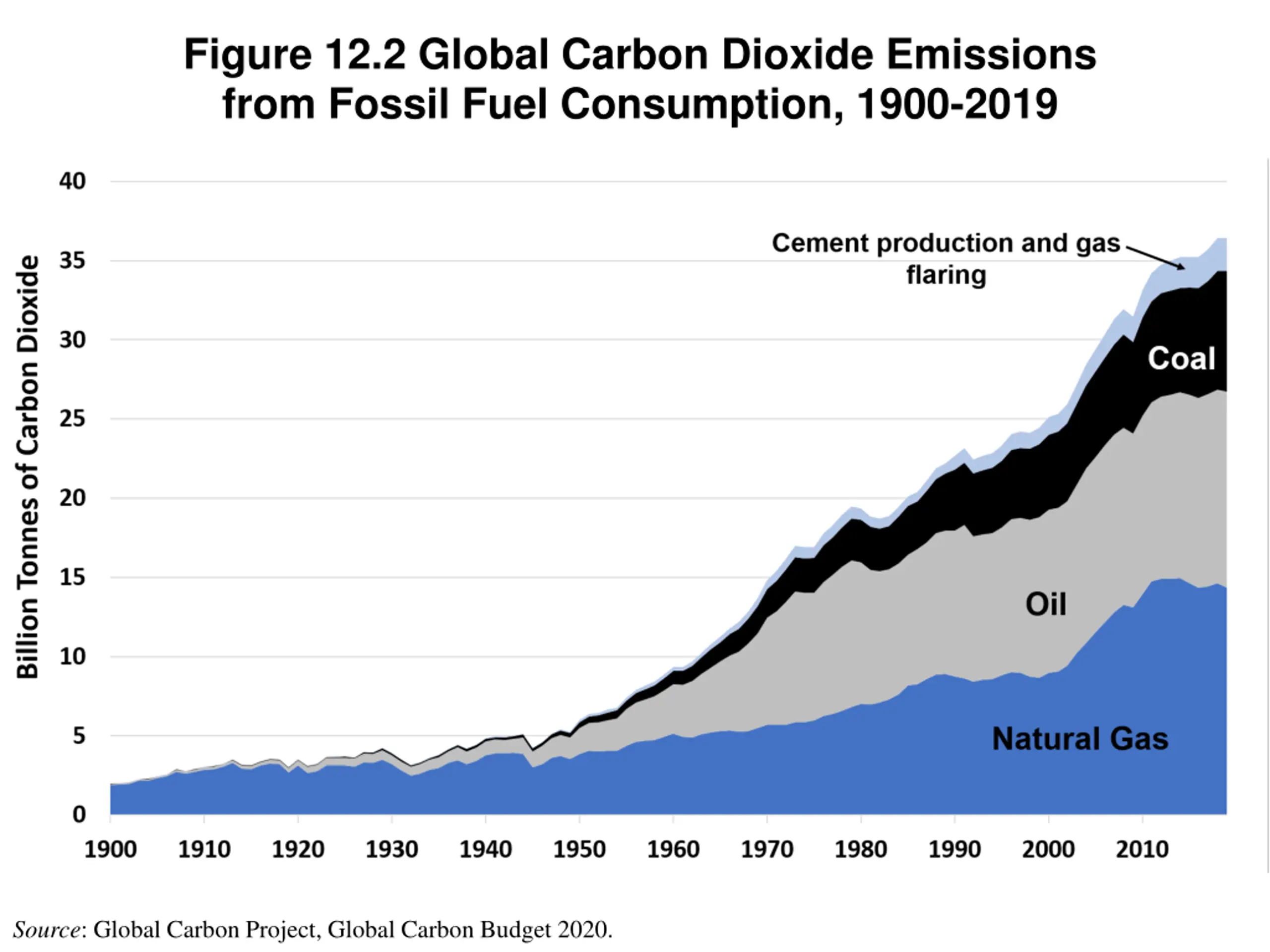 Figure 12.2 Global Carbon Dioxide Emissions from Fossil Fuel Consumption, 1900-2019 Source: Global Carbon Project, Global Carbon Budget 2020.