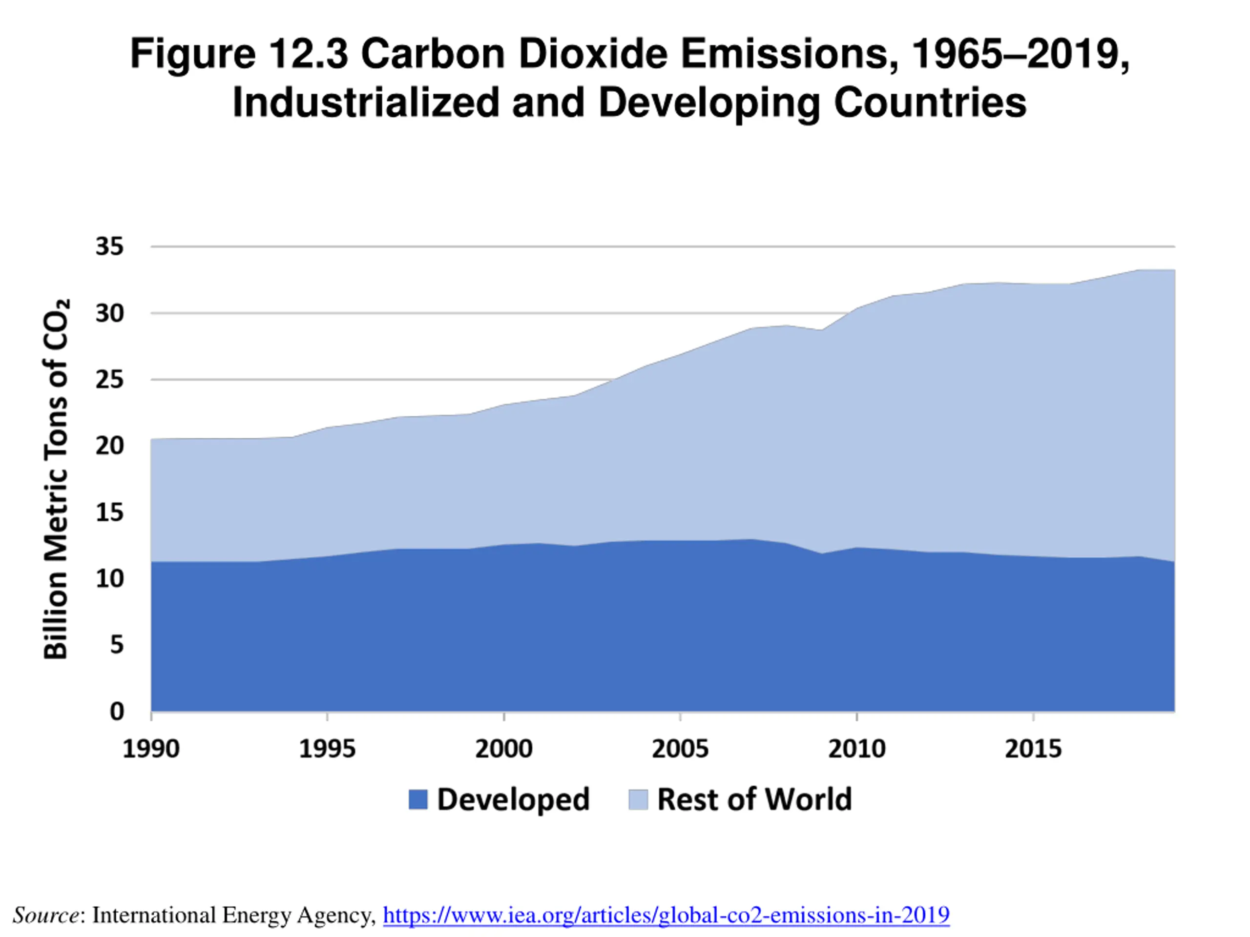 Figure 12.3 Carbon Dioxide Emissions, 19652019, Industrialized and Developing Countries Source: International Energy Agency, https://www.iea.org/articles/global-co2-emissions-in-2019