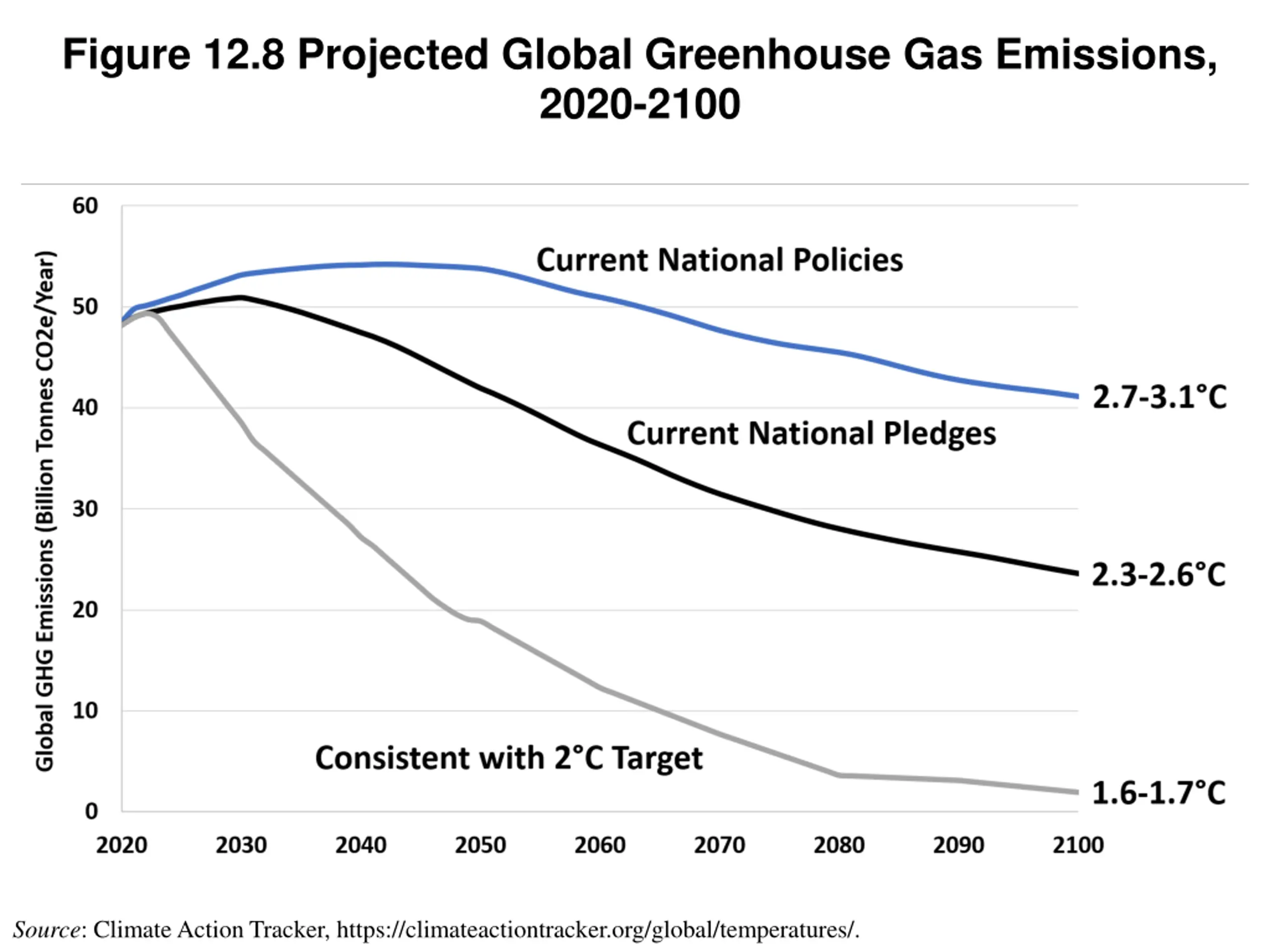 Figure 12.8 Projected Global Greenhouse Gas Emissions, 2020-2100 Source: Climate Action Tracker, https://climateactiontracker.org/global/temperatures/.