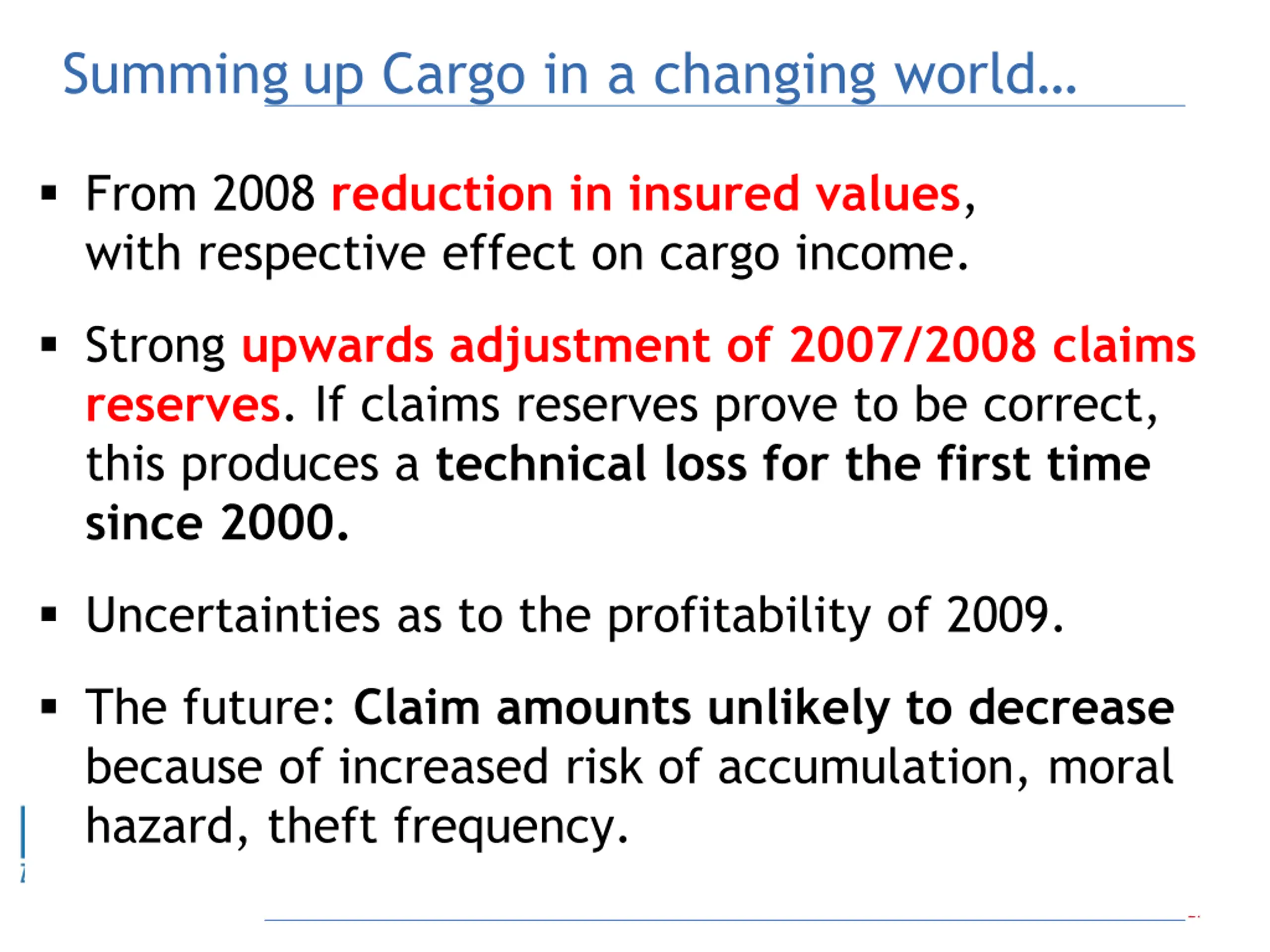 Summing up Cargo in a changing world From 2008 reduction in insured values, with respective effect on cargo income. Strong upwards adjustment of 2007/2008 claims reserves. If claims reserves prove to be correct, this produces a technical loss for the first time since 2000. Uncertainties as to the profitability of 2009. The future: Claim amounts unlikely to decrease because of increased risk of accumulation, moral hazard, theft frequency. 12 TO 15 SEPTEMBER 27