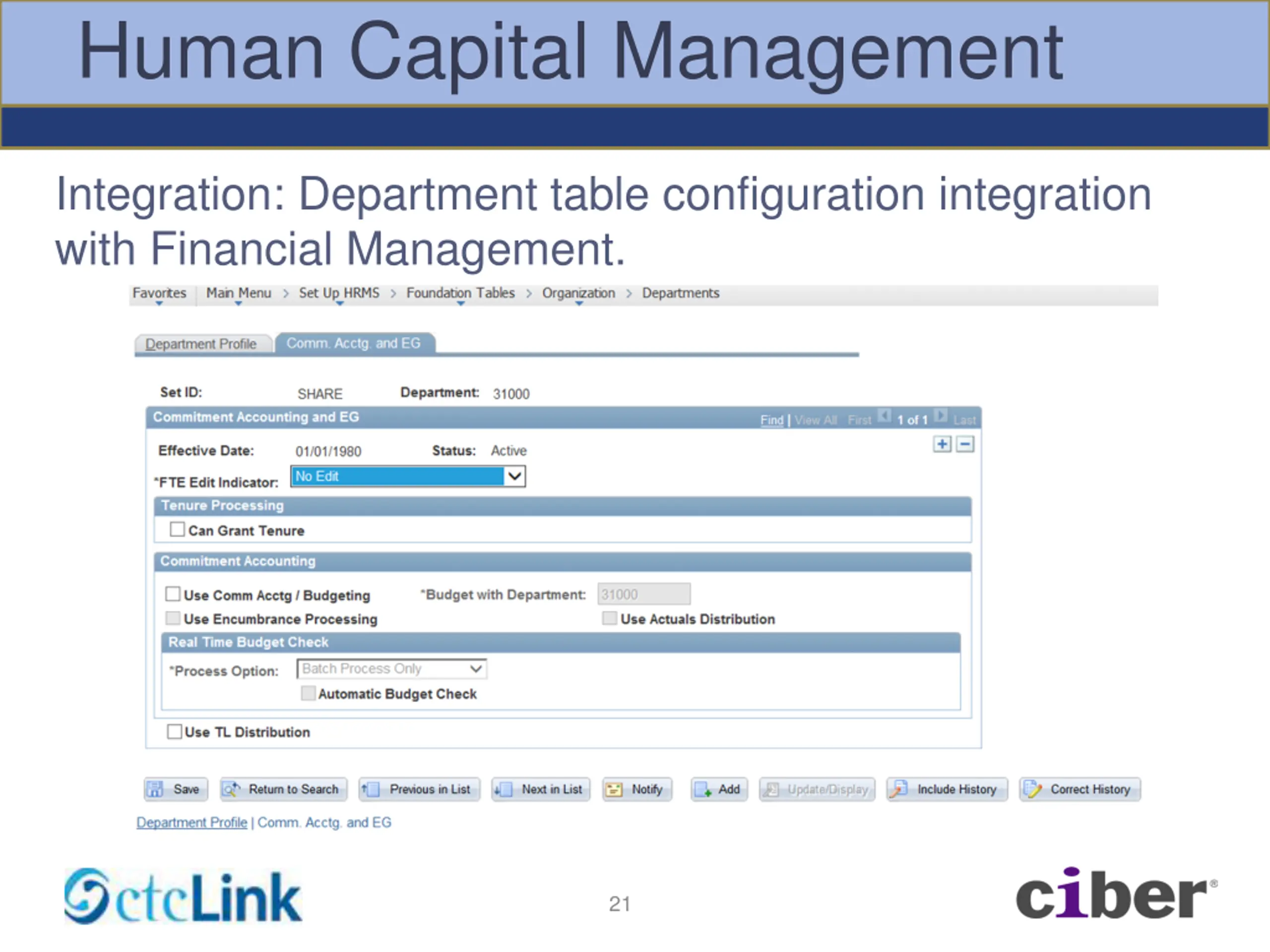 Human Capital Management Integration: Department table configuration integration with Financial Management. 21