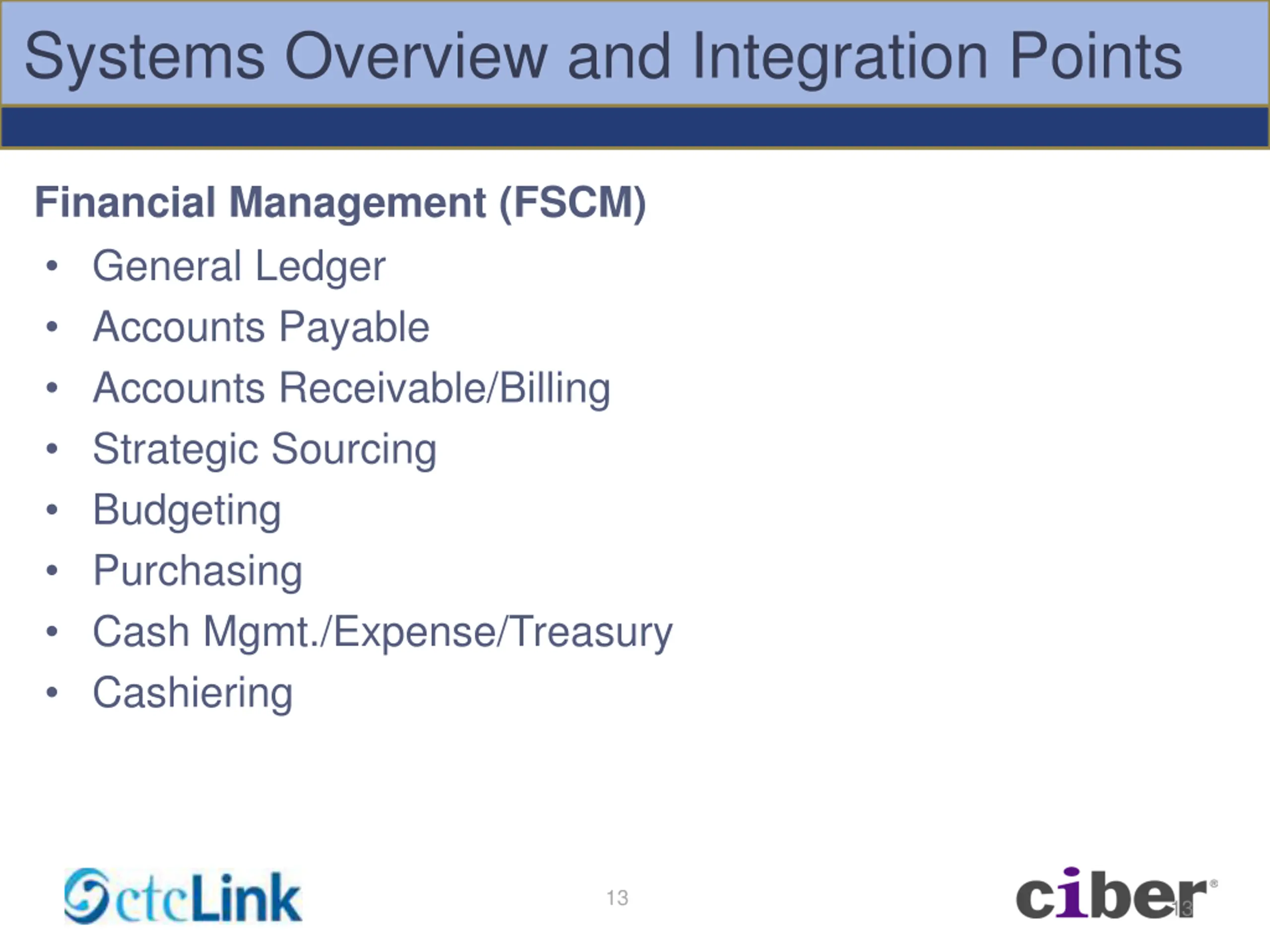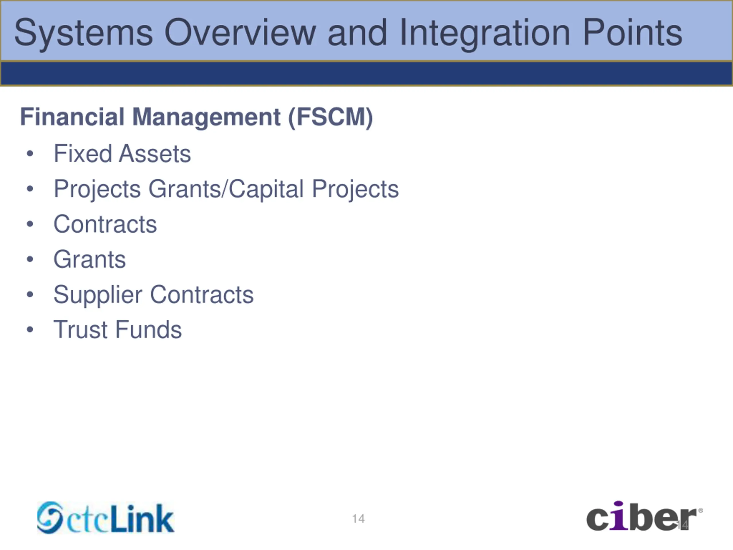 Systems Overview and Integration Points Financial Management (FSCM) General Ledger Accounts Payable Accounts Receivable/Billing Strategic Sourcing Budgeting Purchasing Cash Mgmt./Expense/Treasury Cashiering 13 13