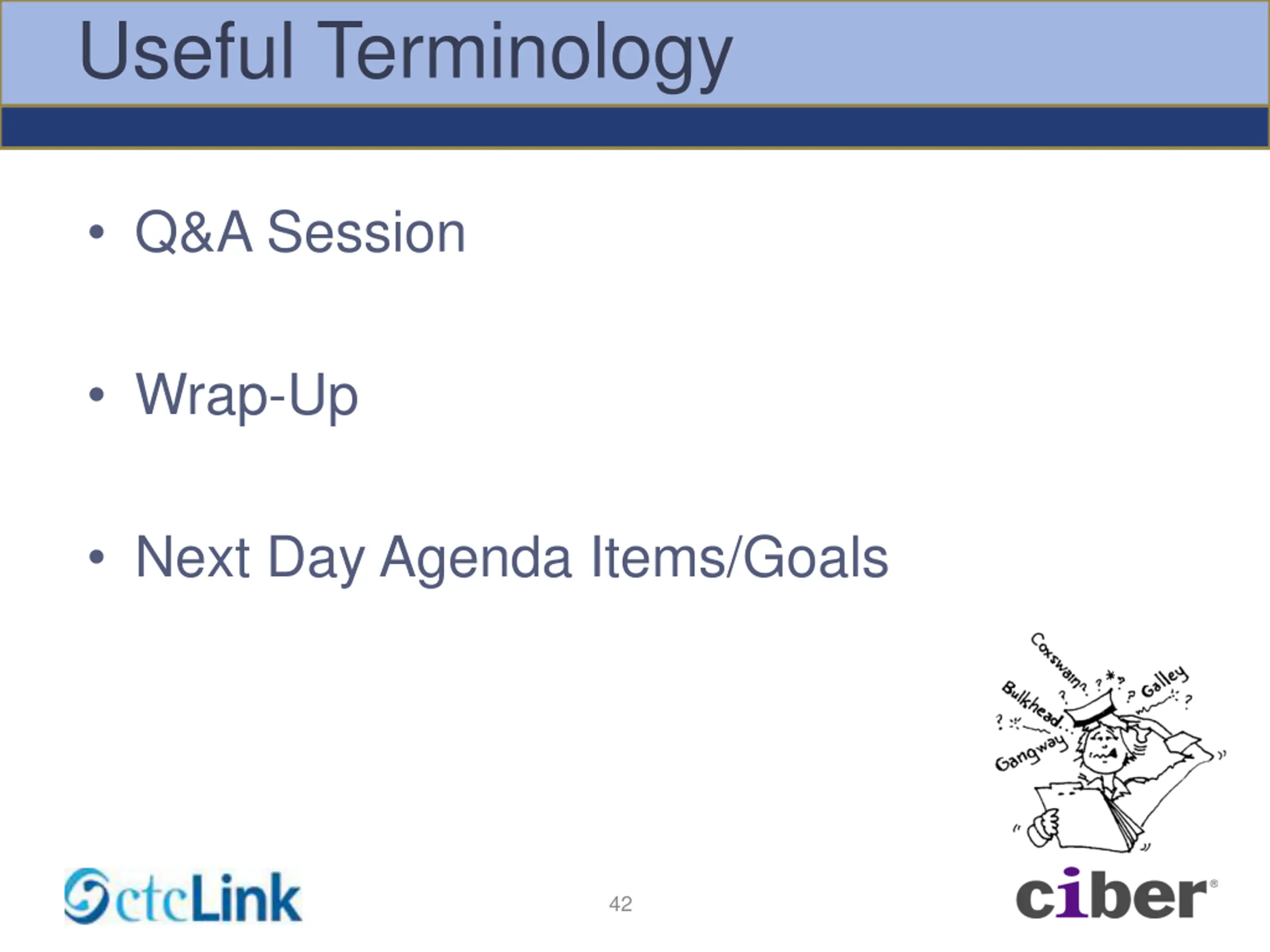 Useful Terminology Q&A Session Wrap-Up Next Day Agenda Items/Goals 42