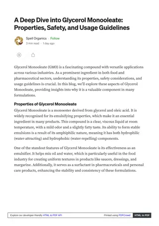 water-based personal care products, shaving creams, and lubricants. The pharmaceutical segment, benefiting from glycerol's healing and nutritional properties, is expected to see the highest growth, with applications in toothpaste, expectorants, and mouthwashes. Additionally, glycerol's versatility extends to food preservatives, explosives, perfumes, antifreeze, lubrication, and printing inks. Key Market Segments By Type Refined Crude By Source Biodiesel Fatty Acids Fatty Alcohols Soaps By End-use Food & Beverage Nutraceutical Pharmaceutical Industrial Personal Care & Cosmetics Other End-uses Drivers The increasing demand for biodiesel is a major driver of the glycerol market. As consumers and the transportation industry seek cleaner, renewable fuel sources,