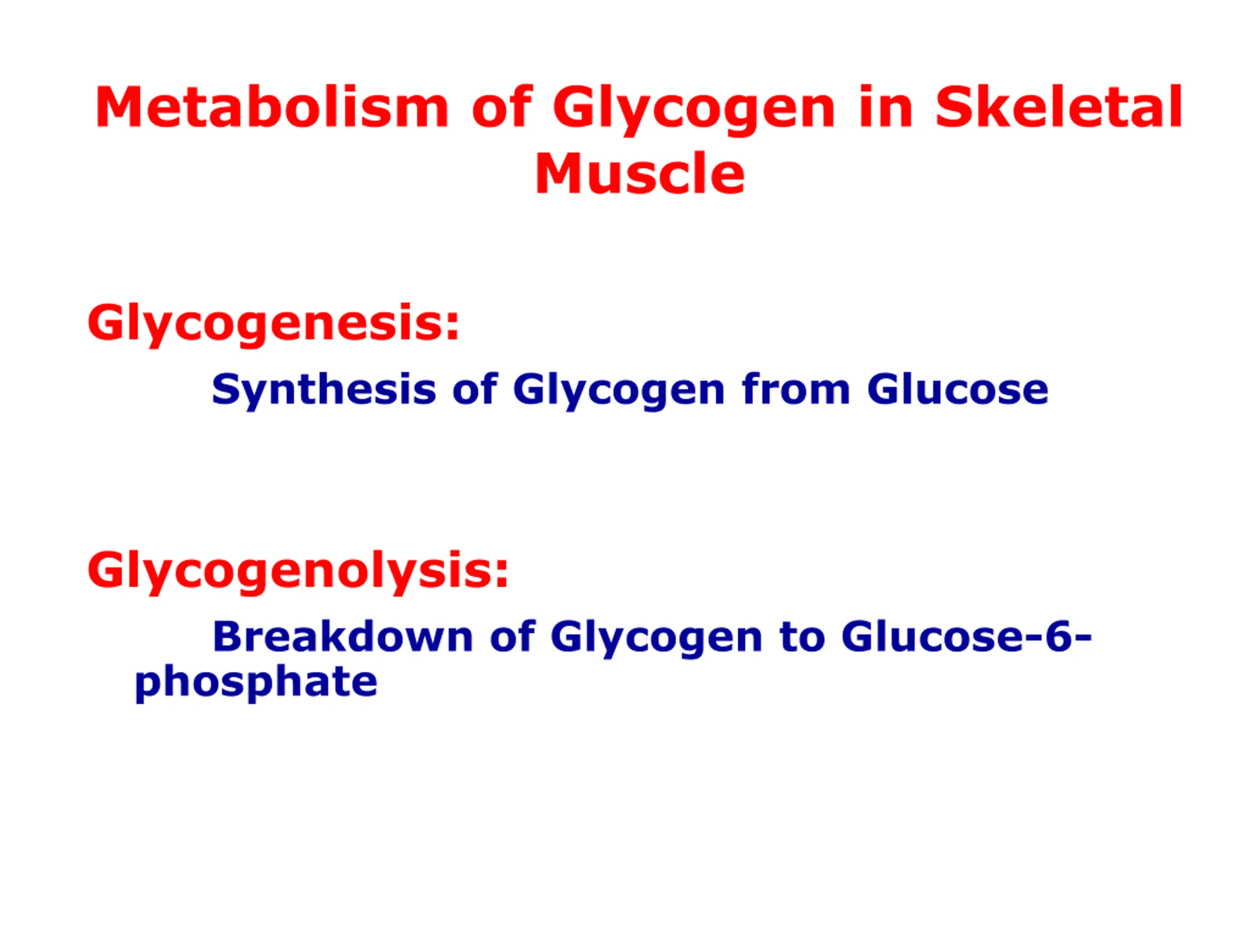 Metabolism of Glycogen in Skeletal Muscle Glycogenesis: Synthesis of Glycogen from Glucose Glycogenolysis: Breakdown of Glycogen to Glucose-6- phosphate