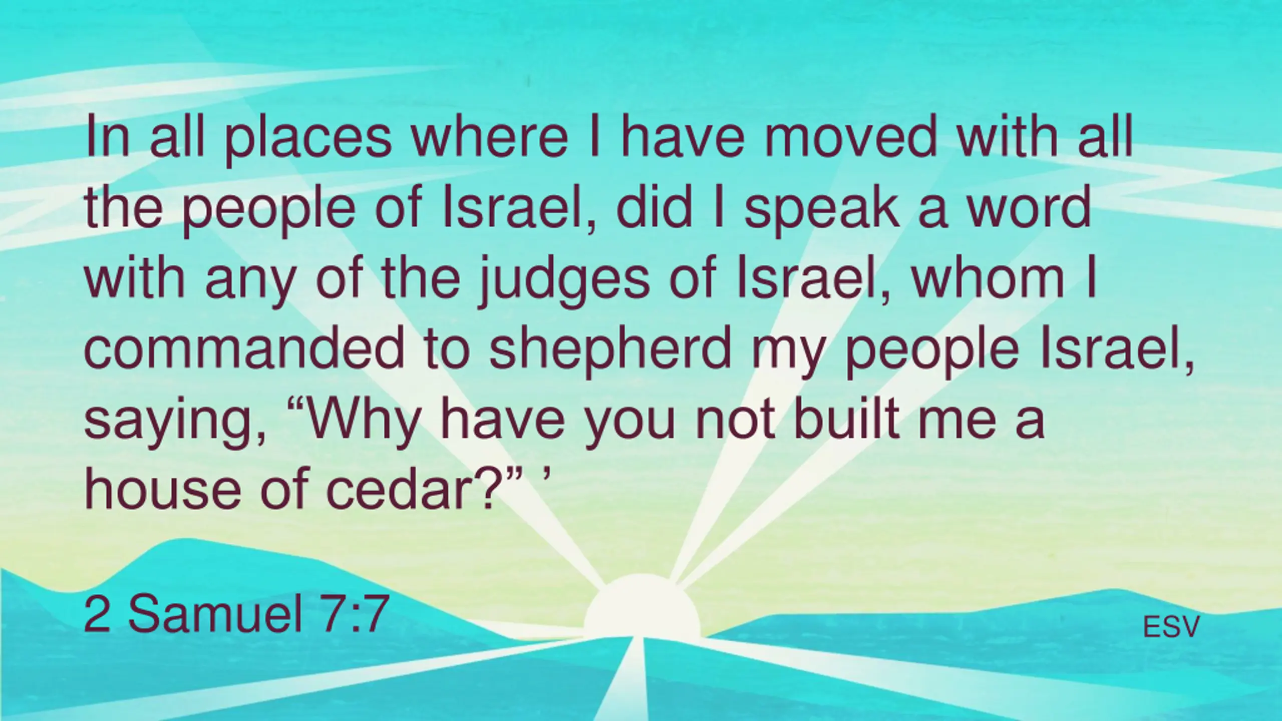In all places where I have moved with all the people of Israel, did I speak a word with any of the judges of Israel, whom I commanded to shepherd my people Israel, saying, Why have you not built me a house of cedar? 2 Samuel 7:7 ESV