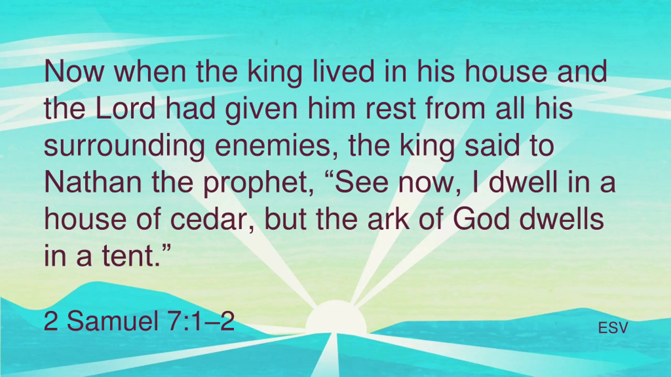 Now when the king lived in his house and the Lord had given him rest from all his surrounding enemies, the king said to Nathan the prophet, See now, I dwell in a house of cedar, but the ark of God dwells in a tent. 2 Samuel 7:1 2 ESV