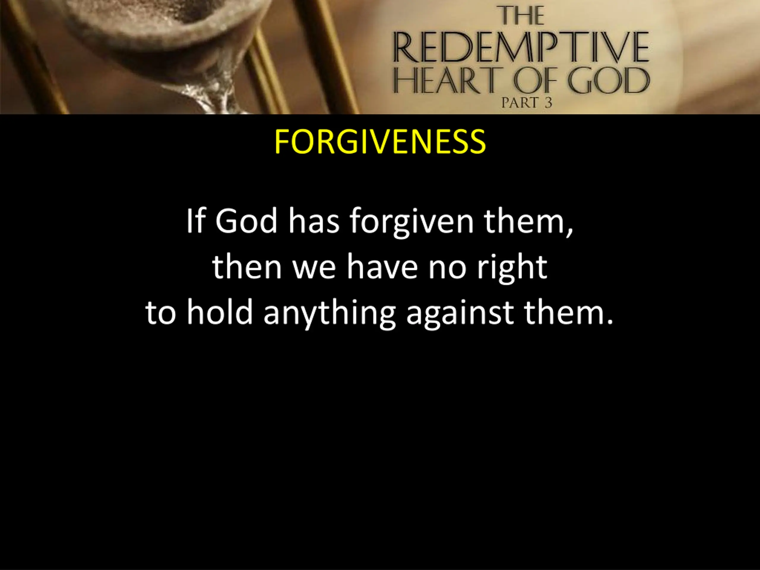 FORGIVENESS If God has forgiven them, then we have no right to hold anything against them.