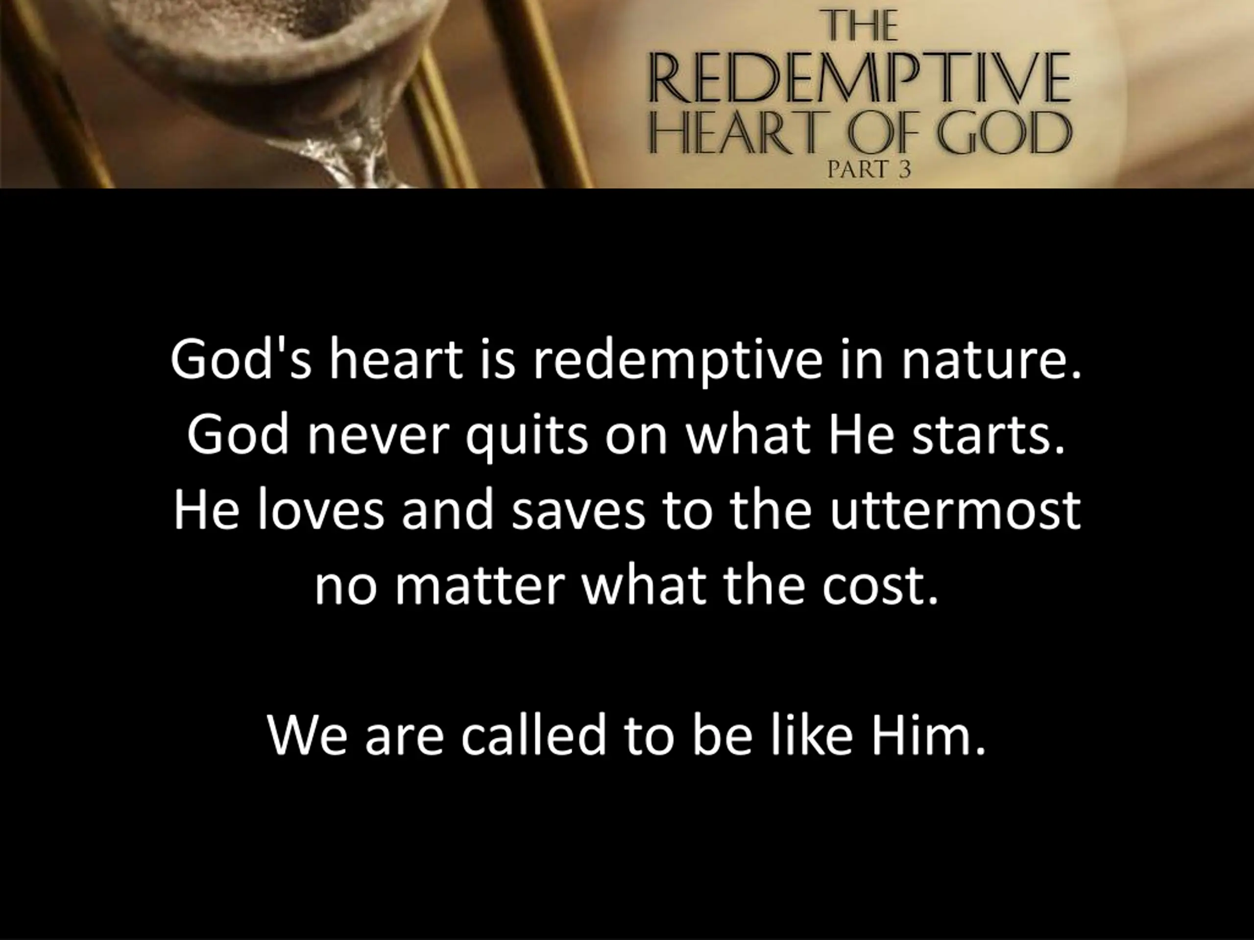 God's heart is redemptive in nature. God never quits on what He starts. He loves and saves to the uttermost no matter what the cost. We are called to be like Him.