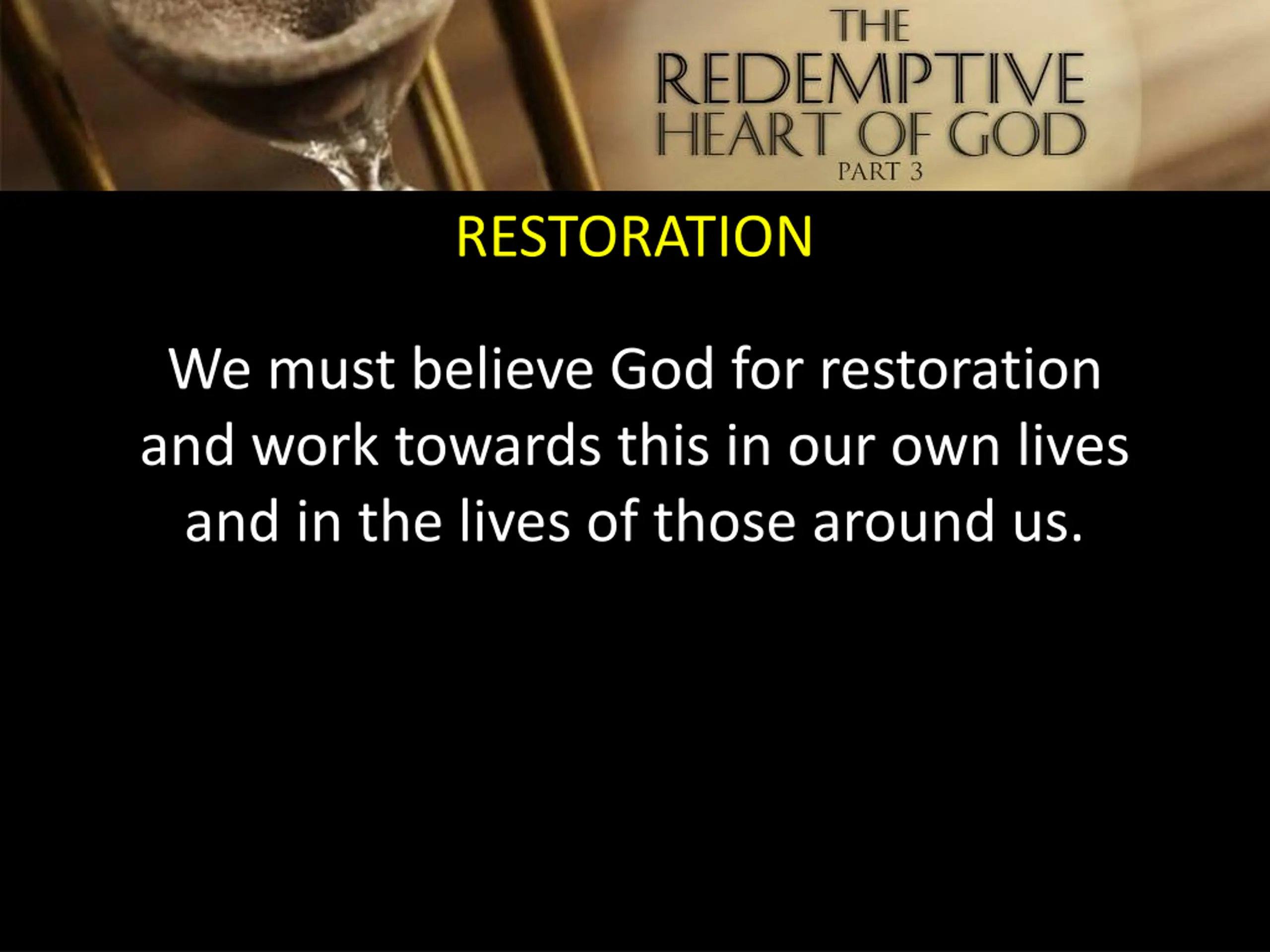 RESTORATION We must believe God for restoration and work towards this in our own lives and in the lives of those around us.