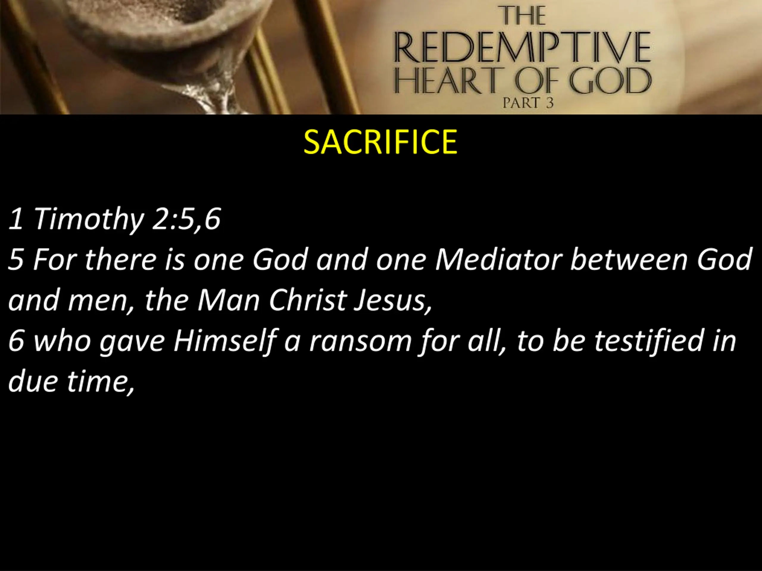 SACRIFICE 1 Timothy 2:5,6 5 For there is one God and one Mediator between God and men, the Man Christ Jesus, 6 who gave Himself a ransom for all, to be testified in due time,
