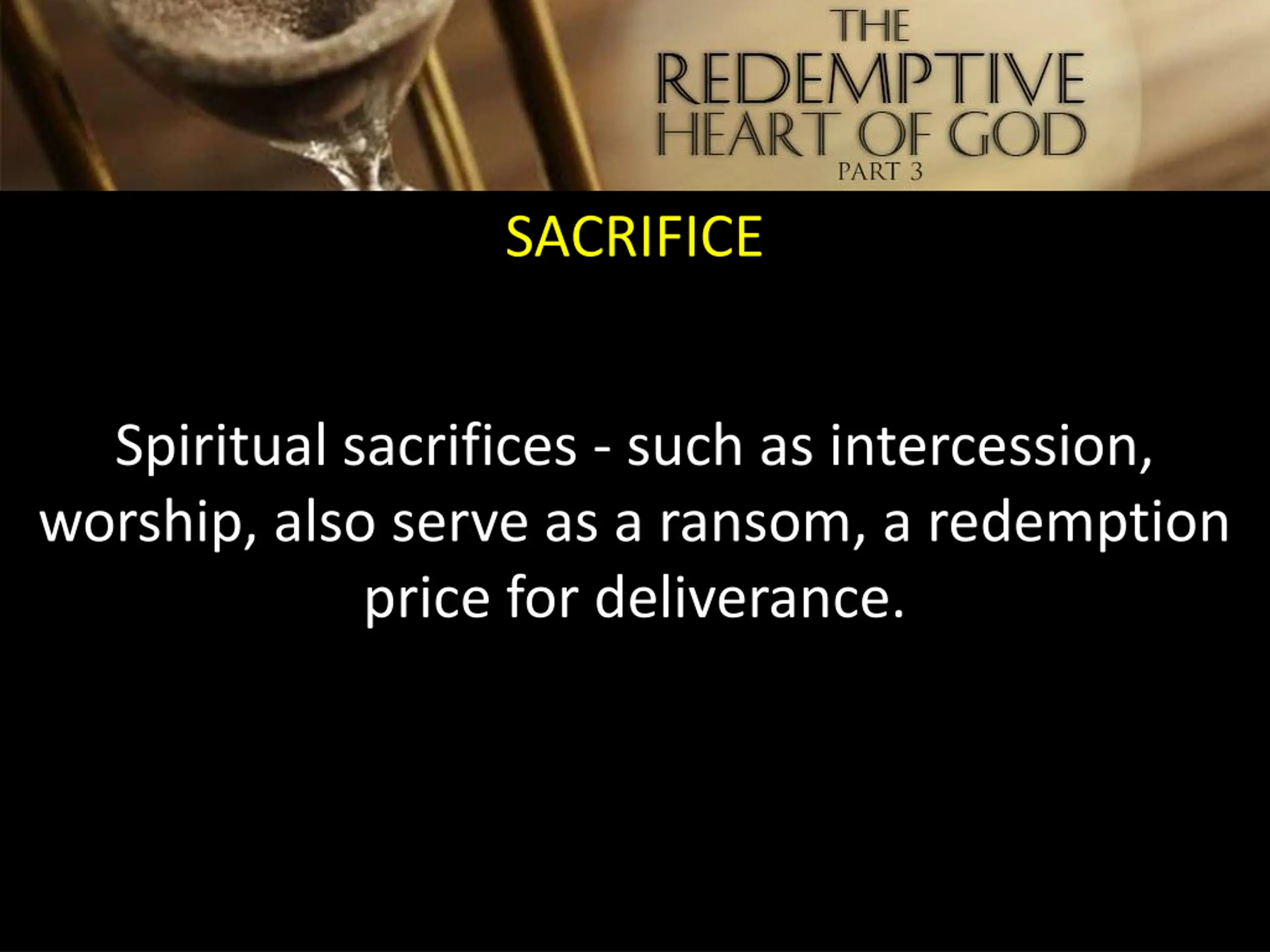 SACRIFICE Spiritual sacrifices - such as intercession, worship, also serve as a ransom, a redemption price for deliverance.