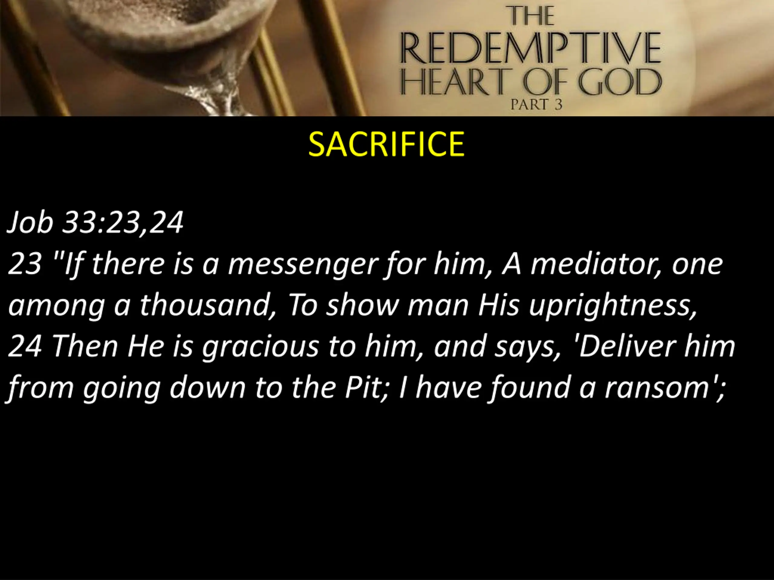 SACRIFICE Job 33:23,24 23 "If there is a messenger for him, A mediator, one among a thousand, To show man His uprightness, 24 Then He is gracious to him, and says, 'Deliver him from going down to the Pit; I have found a ransom';