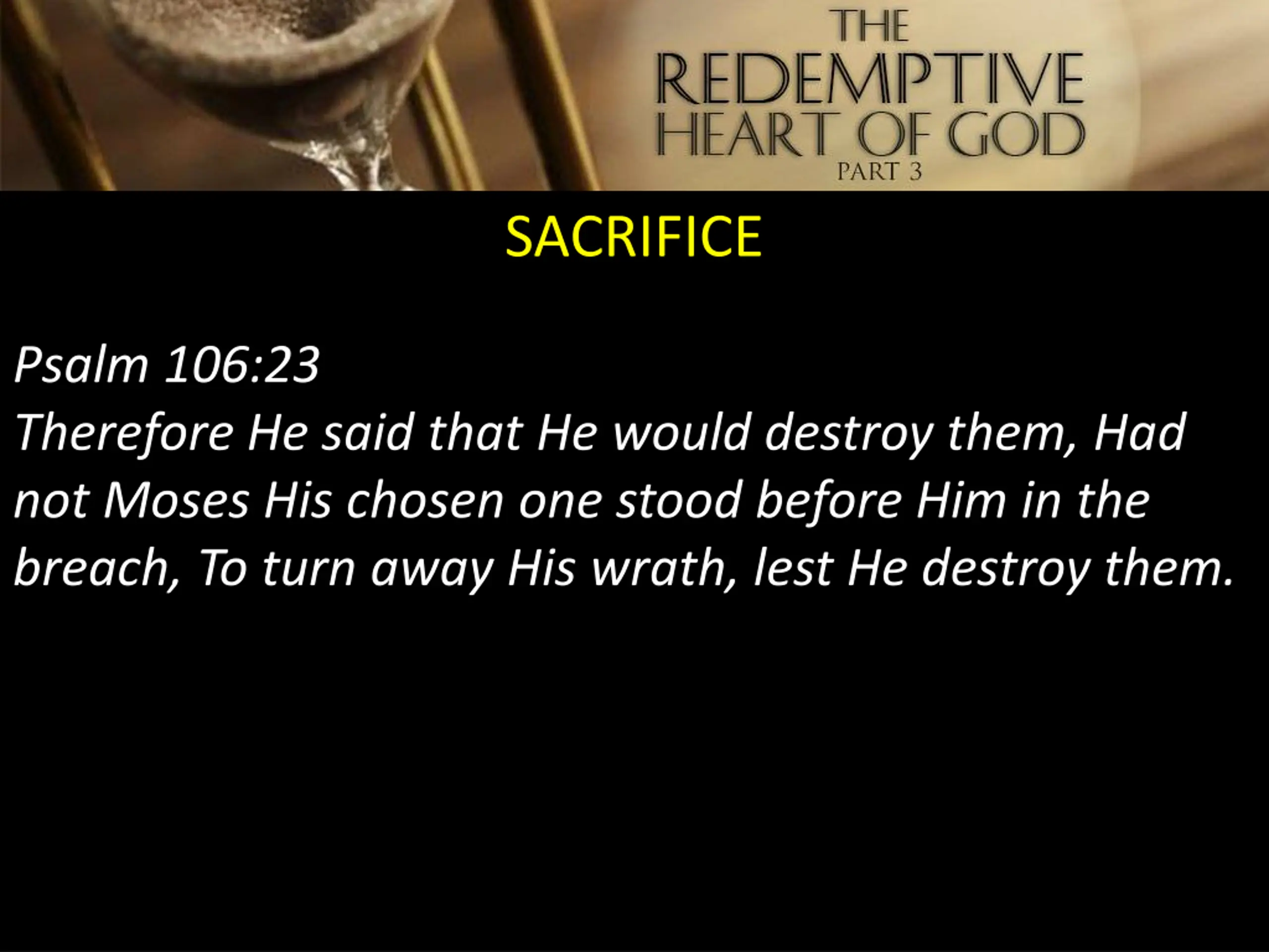 SACRIFICE Psalm 106:23 Therefore He said that He would destroy them, Had not Moses His chosen one stood before Him in the breach, To turn away His wrath, lest He destroy them.