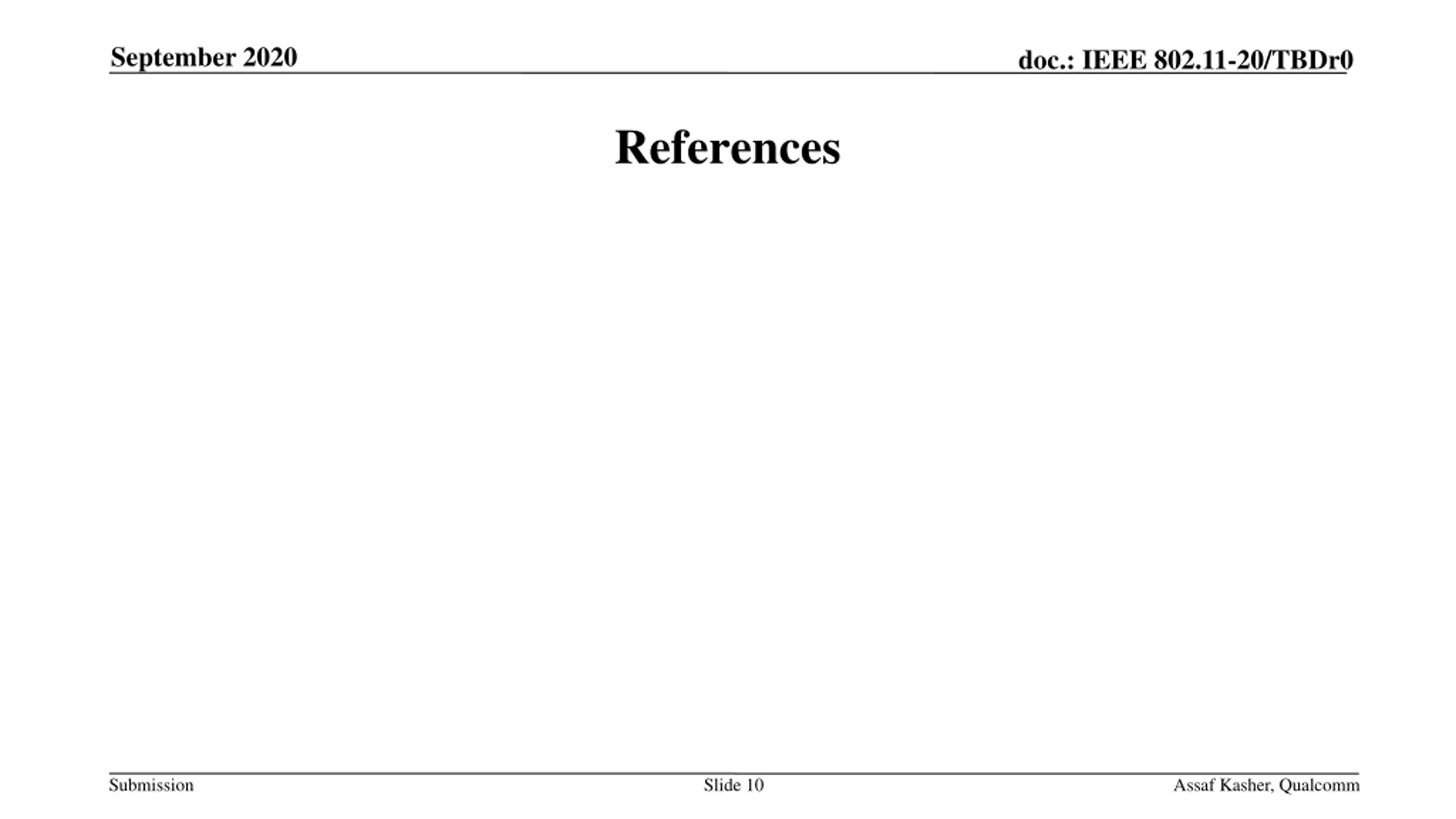 September 2020 doc.: IEEE 802.11-20/TBDr0 References Submission Slide 10 Assaf Kasher, Qualcomm