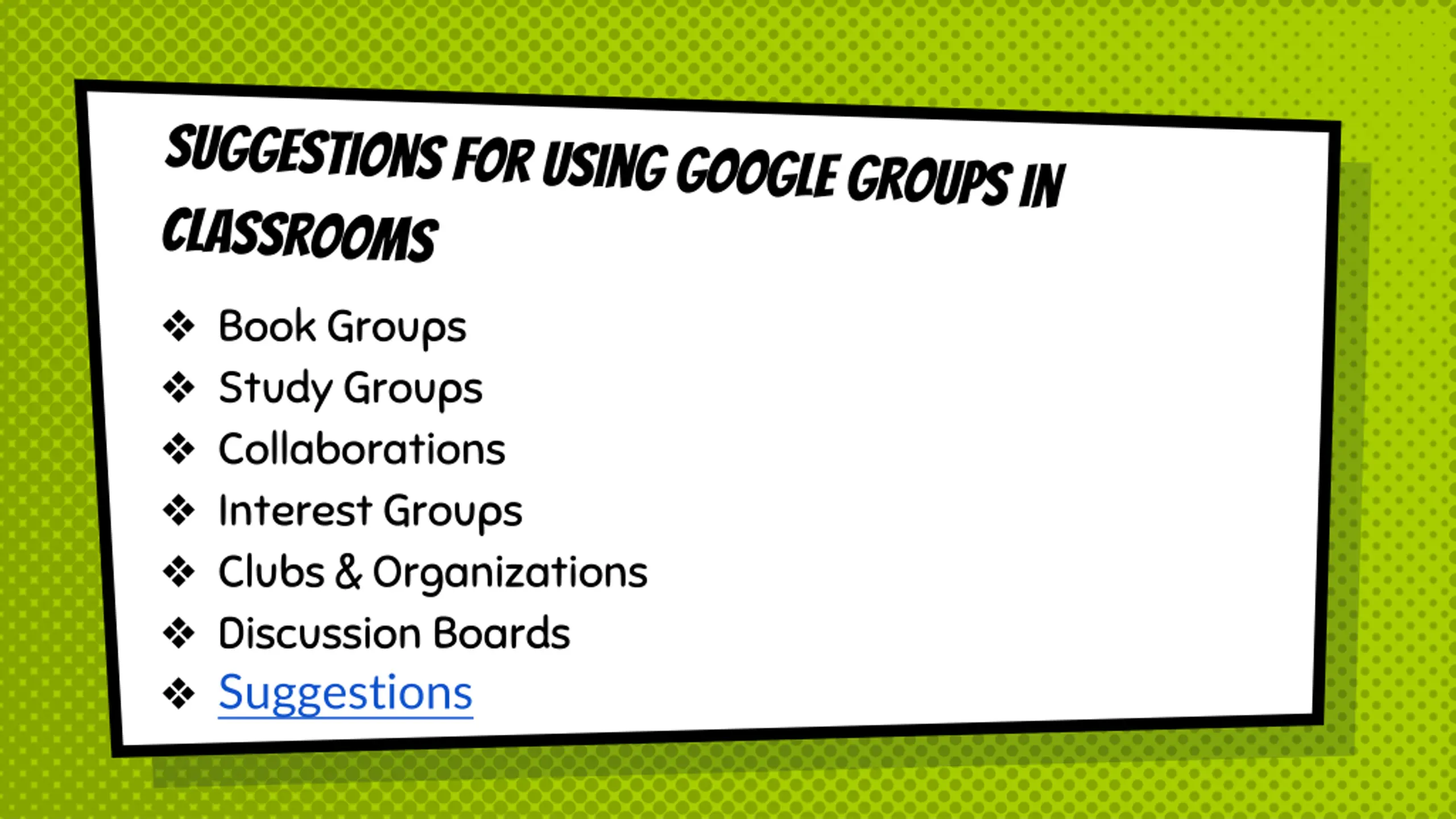 How to create a Group How to invite members into a Group Suggestions for using Groups in the classroom