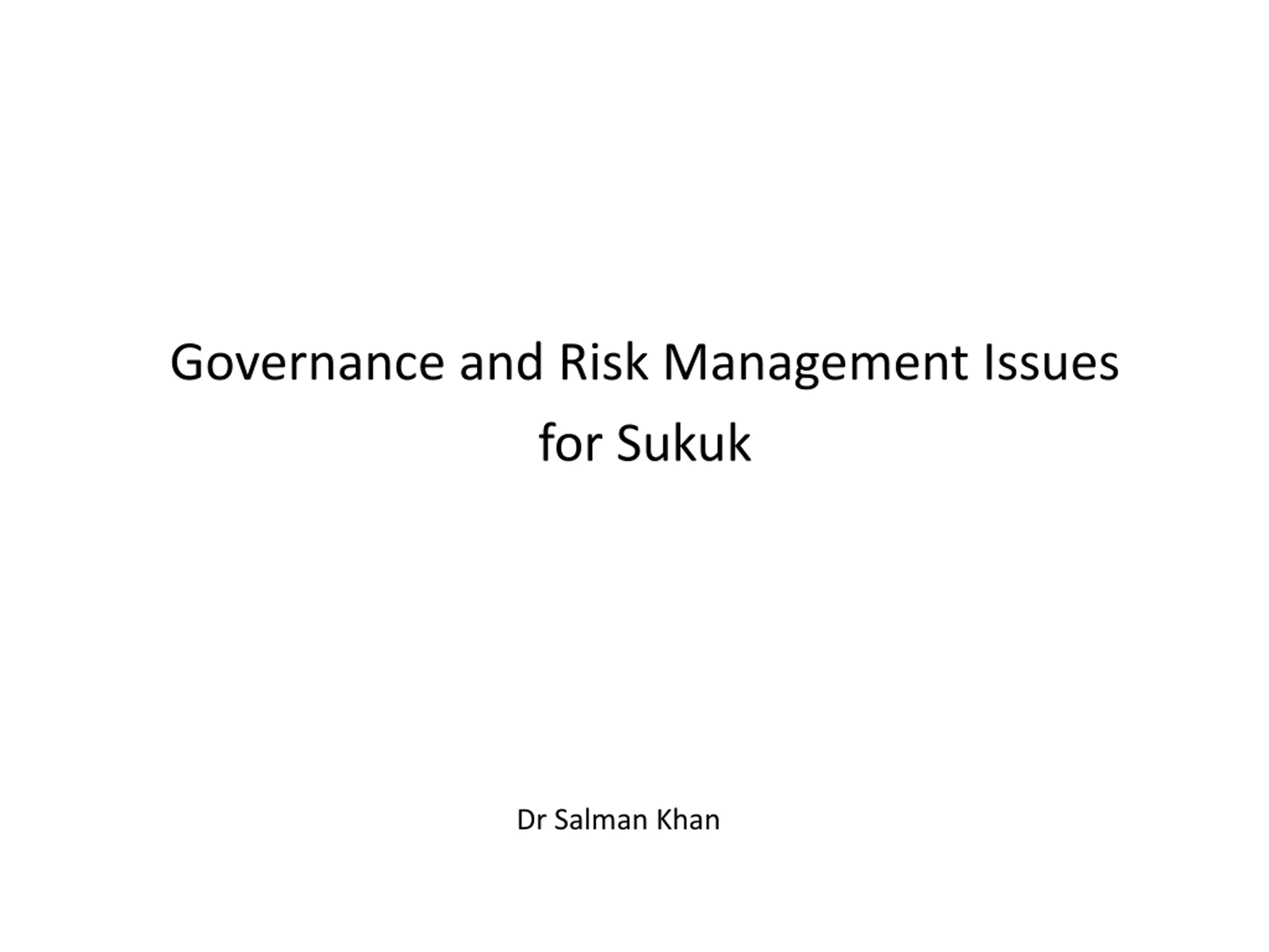 Governance and Risk Management Issues for Sukuk Dr Salman Khan