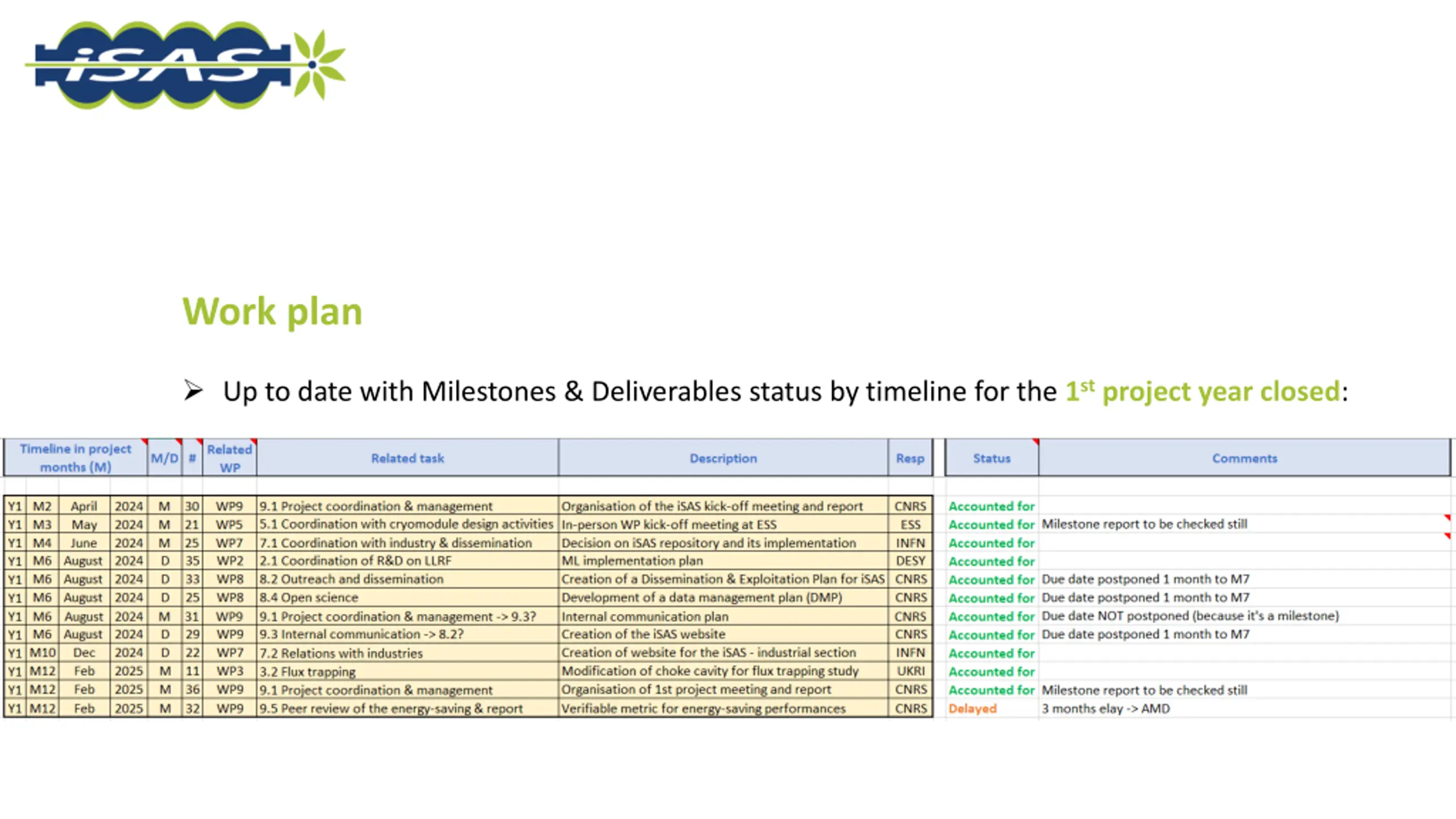 Work plan Up to date with Milestones & Deliverables status by timeline for the 1st project year closed: