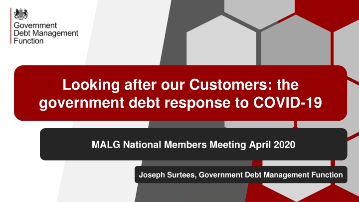 Looking after our Customers: the government debt response to COVID-19 MALG National Members Meeting April 2020 Joseph Surtees, Government Debt Management Function