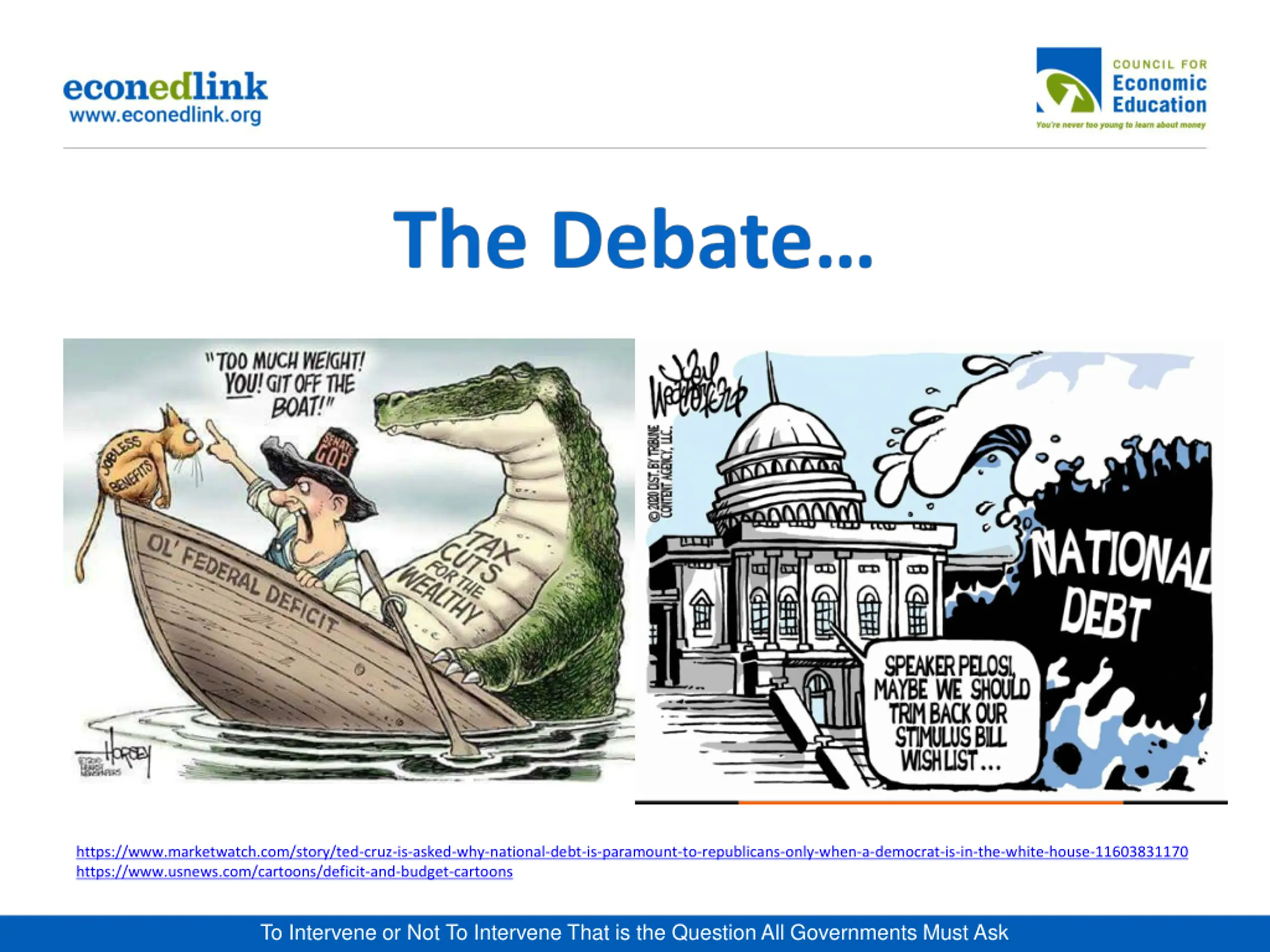 https://www.marketwatch.com/story/ted-cruz-is-asked-why-national-debt-is-paramount-to-republicans-only-when-a-democrat-is-in-the-white-house-11603831170https://www.marketwatch.com/story/ted-cruz-is-asked-why-national-debt-is-paramount-to-republicans-only-when-a-democrat-is-in-the-white-house-11603831170 https://www.usnews.com/cartoons/deficit-and-budget-cartoons To Intervene or Not To Intervene That is the Question All Governments Must Ask