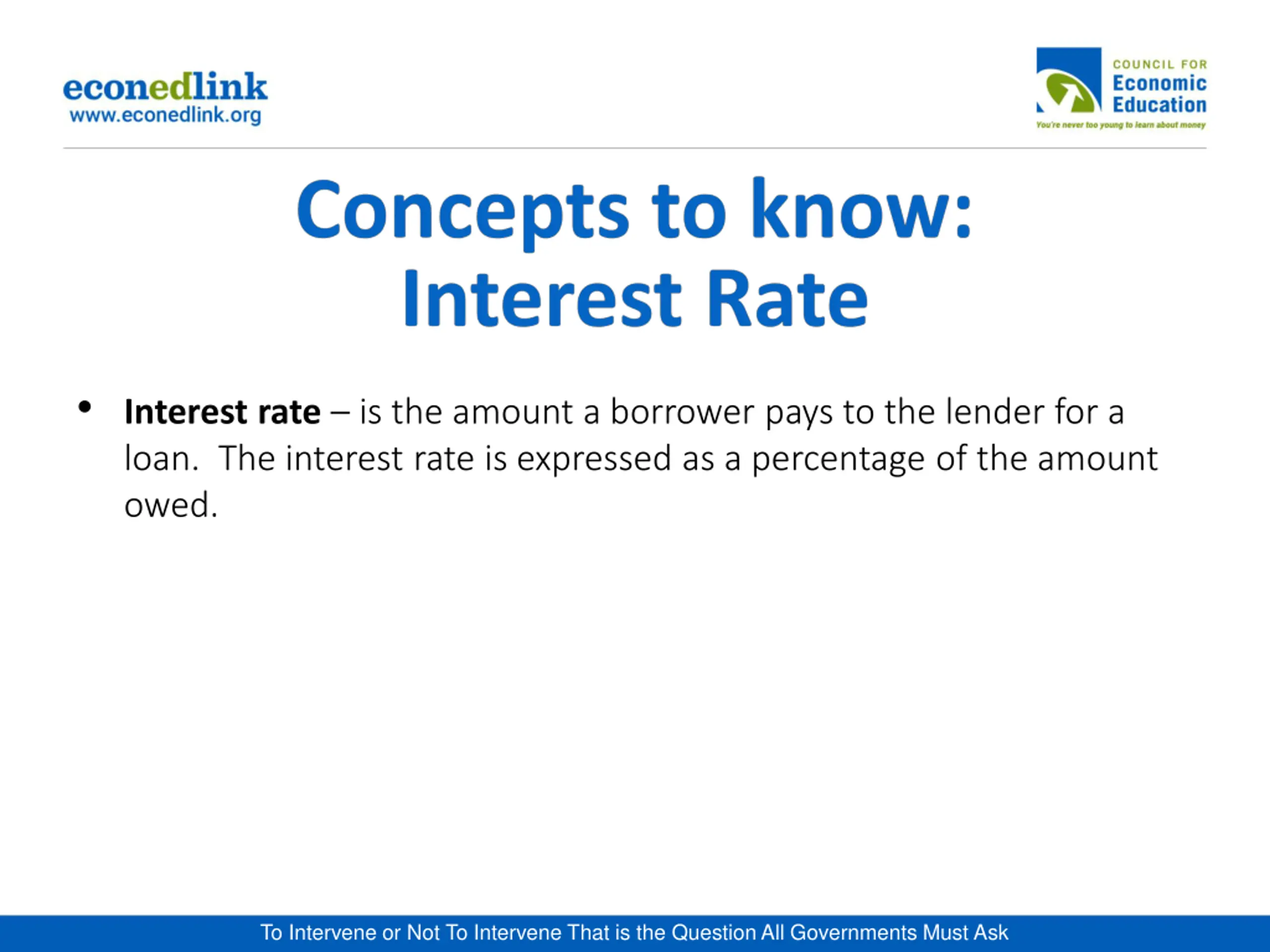 Interest rate is the amount a borrower pays to the lender for a loan. The interest rate is expressed as a percentage of the amount owed. To Intervene or Not To Intervene That is the Question All Governments Must Ask