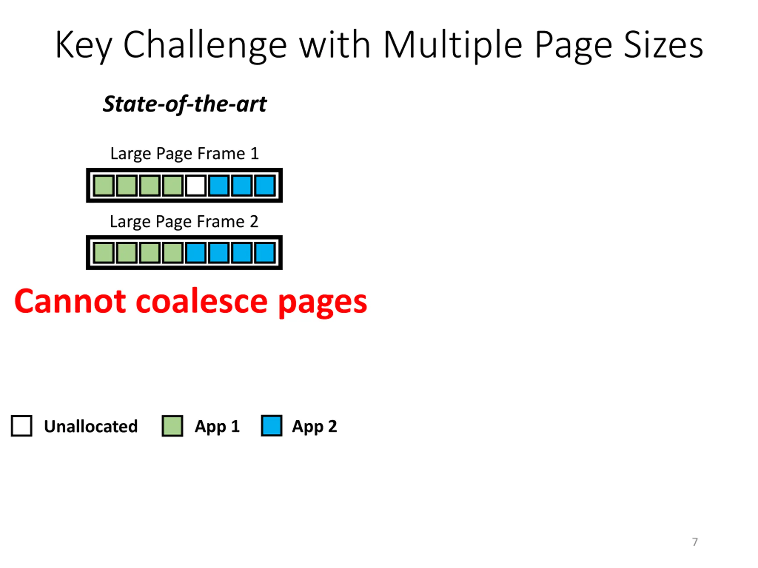 Key Challenge with Multiple Page Sizes State-of-the-art Large Page Frame 1 Large Page Frame 2 Cannot coalesce pages App 1 App 2 Unallocated 7